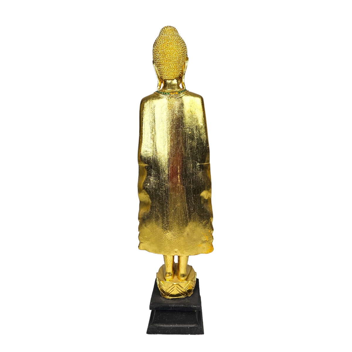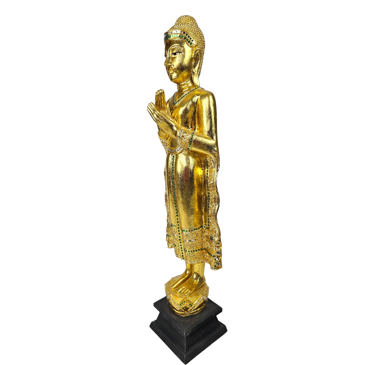"Erleben Sie ein Stück thailändischer Handwerkskunst mit unserem einzigartigen, goldenen Buddha, prächtig verziert mit funkelnden Mosaiksteinen. Handgefertigt aus hochwertigem Holz, ist dieser Buddha ein echtes Unikat und versteht es, durch sein detailgenaues Design zu faszinieren. Die sanften Konturen und die warmen, goldenen Töne schaffen ein harmonisches Ambiente, während das reiche Mosaikmuster einen exotischen Flair verleiht. Dieser Buddha ist mehr als nur eine Dekoration - er ist ein Ausdruck von Ruhe, Eleganz und spiritueller Tiefe. Lassen Sie sich von seiner majestätischen Präsenz inspirieren und tauchen Sie ein in eine Welt der inneren Ruhe und Gelassenheit."