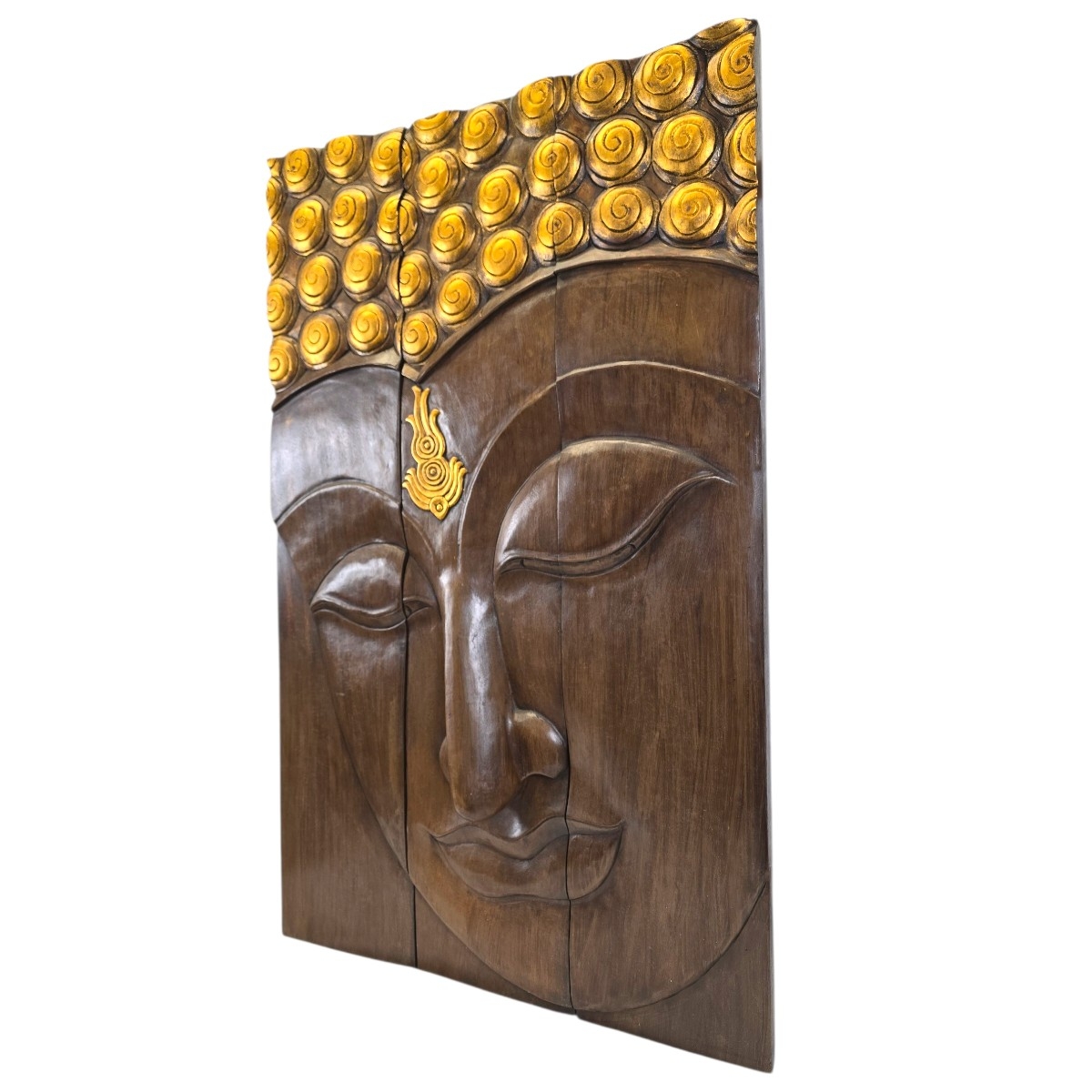 Eben Sie die Schönheit und Ruhe des Ostens in Ihrem Zuhause mit unserem exquisiten 3-teiligen Buddha Kopf Relief. Dieses handgefertigte Kunstwerk aus Thailand ist ein Meisterstück traditioneller Handwerkskunst und verkörpert die zeitlose Weisheit und Gelassenheit Buddhas.