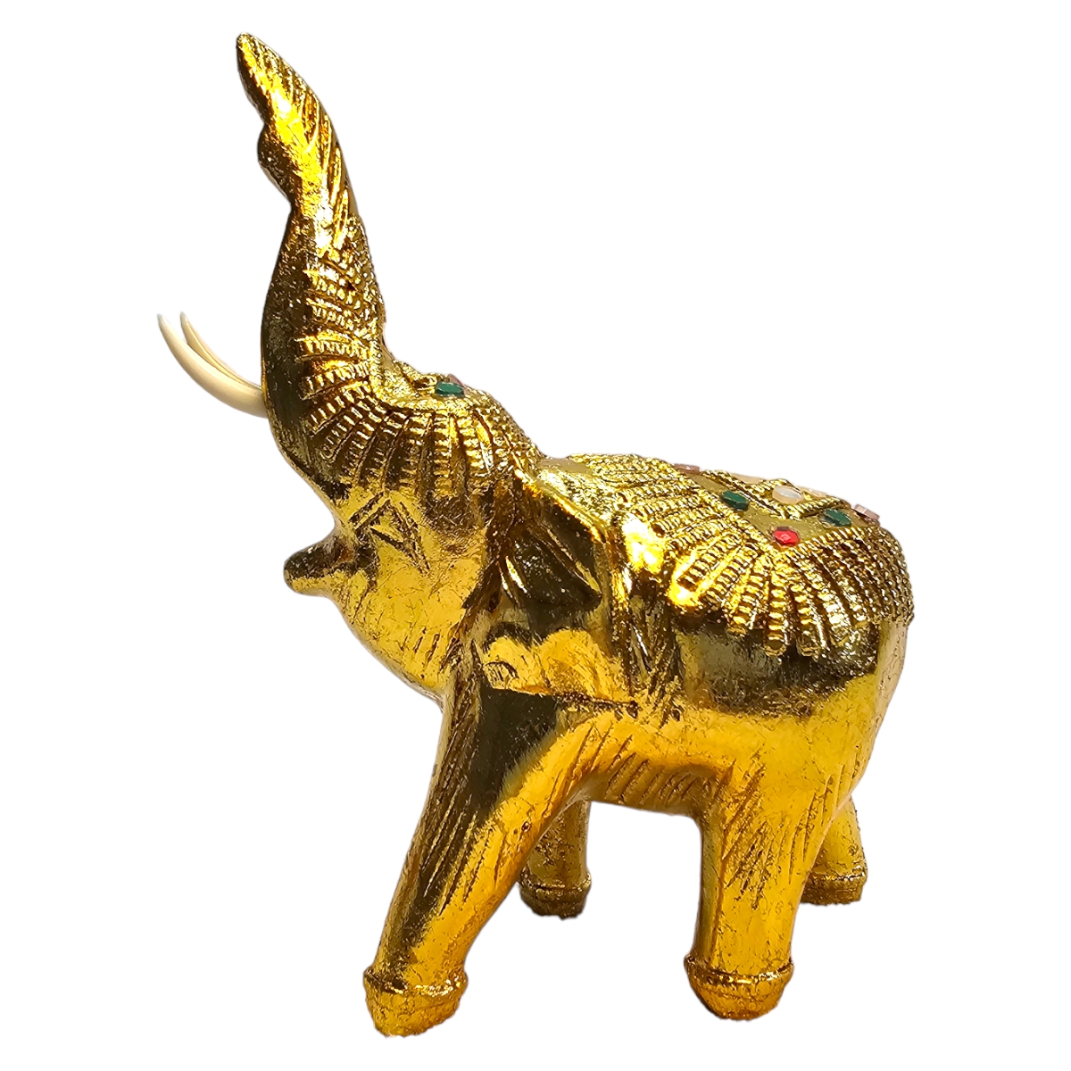 Dieser handgefertigte Elefant aus Holz ist nicht nur ein bemerkenswertes Kunstwerk, sondern auch ein Hauch von Exotik für Ihr Zuhause. Mit seiner goldenen Farbe und den sorgfältig angeordneten Mosaiksteinen strahlt er eine eindrucksvolle Pracht aus, die sicherlich die Aufmerksamkeit aller Betrachter auf sich zieht. In mühevoller Handarbeit in Thailand gefertigt, spiegelt jeder Zentimeter dieses atemberaubenden Stücks die unvergleichliche Kunstfertigkeit seiner Hersteller wider. Der Elefant symbolisiert in der thailändischen Kultur Stärke, Weisheit und Ausdauer und repräsentiert damit überzeugende Werte, die in jedes Zuhause integriert werden können. Dieser Holzelefant ist nicht nur ein Dekorationsobjekt, er erzählt auch eine Geschichte. Die individuelle Gestaltung von jedem einzelnen Mosaikstein lässt dieses Kunstwerk lebendig und einzigartig wirken, fast so, als ob ein Stück thailändische Kultur direkt zu Ihnen nach Hause geliefert würde.