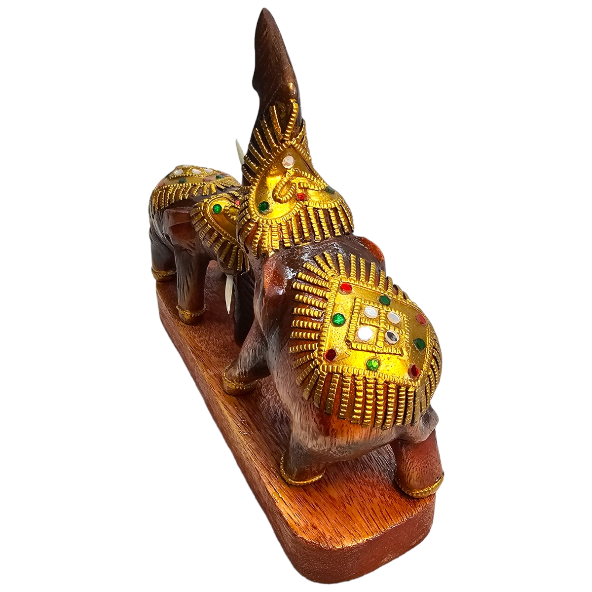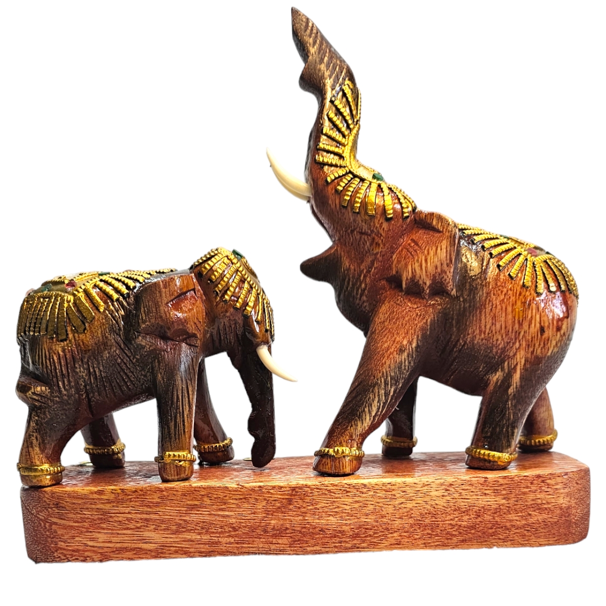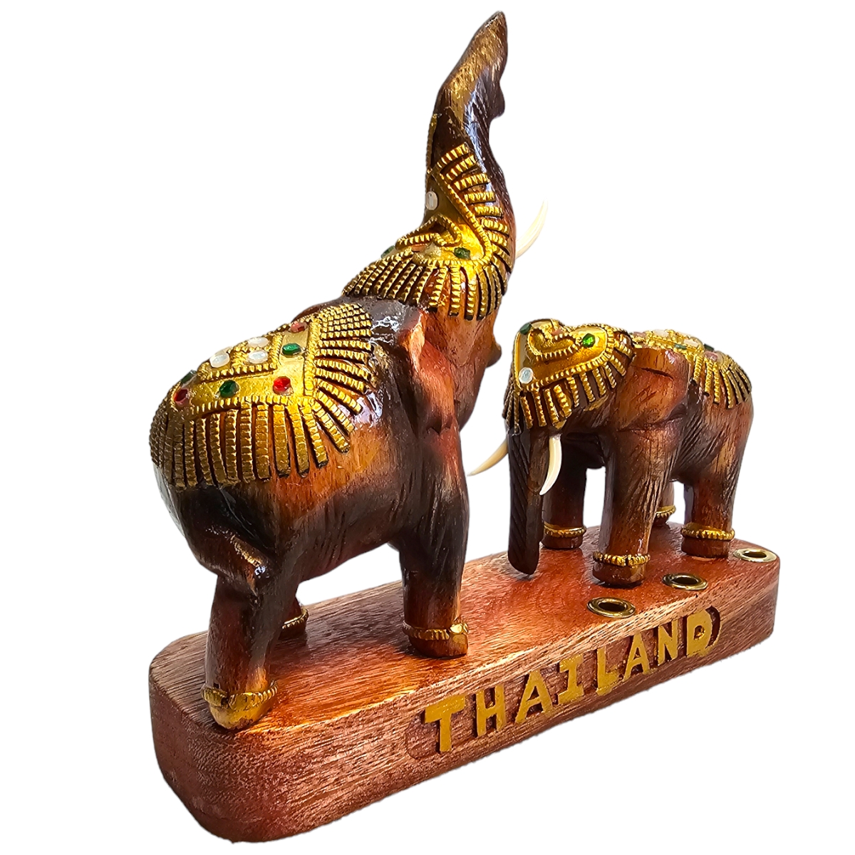 Erfrischen Sie Ihren Wohnraum mit unserer eindrucksvollen Thai Dekoration - zwei reizende Elefanten künstvoll auf einem Holzstück errichtet. Die schlichte Schönheit dieser Kunst, mit der Schrift "Thailand" elegant darauf eingraviert, verwandelt Ihr Zuhause in eine exotische Oase. Gefertigt mit leuchtenden Mosaiksteinen, liefern diese Elefanten ein spektakuläres Farbenspiel, das jeden Raum aufhellt. Das warme, natürliche Holz fügt sich nahtlos in jedes bestehende Dekor ein und verleiht ihm einen Hauch von rustikaler Schönheit. Diese Thai Dekoration ist nicht nur ein Hingucker, sondern bietet auch eine Augenweide, die Sie Jahr für Jahr bewundern können. Lassen Sie sich von der natürlichen Schönheit Thailands verzaubern und bringen Sie ein Stück dieses tropischen Paradieses in Ihr Heim!