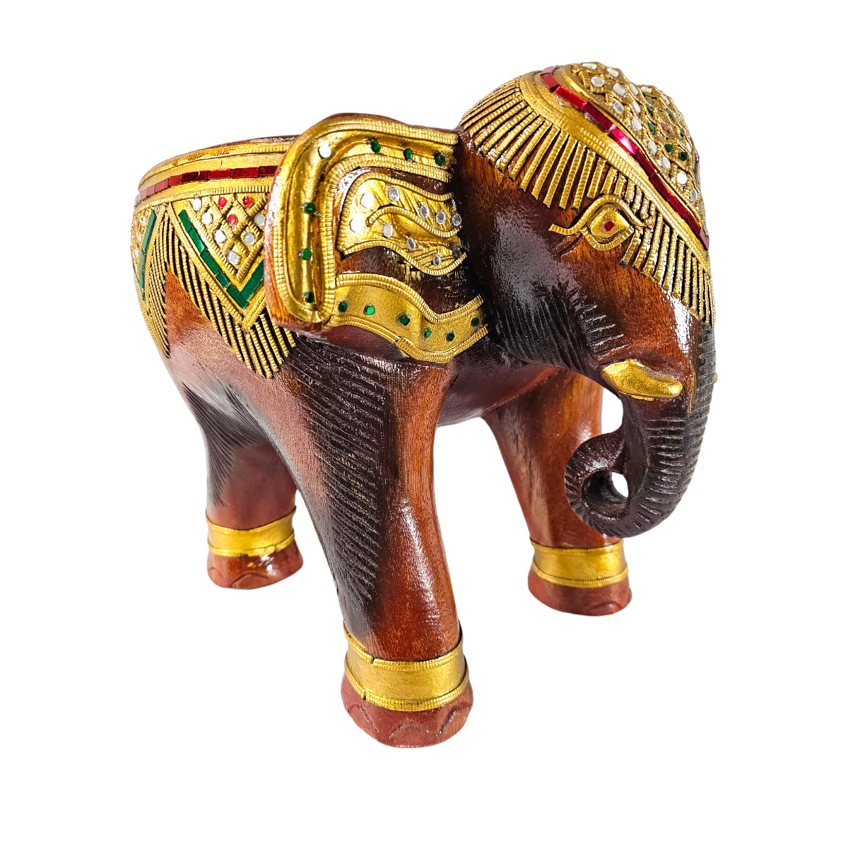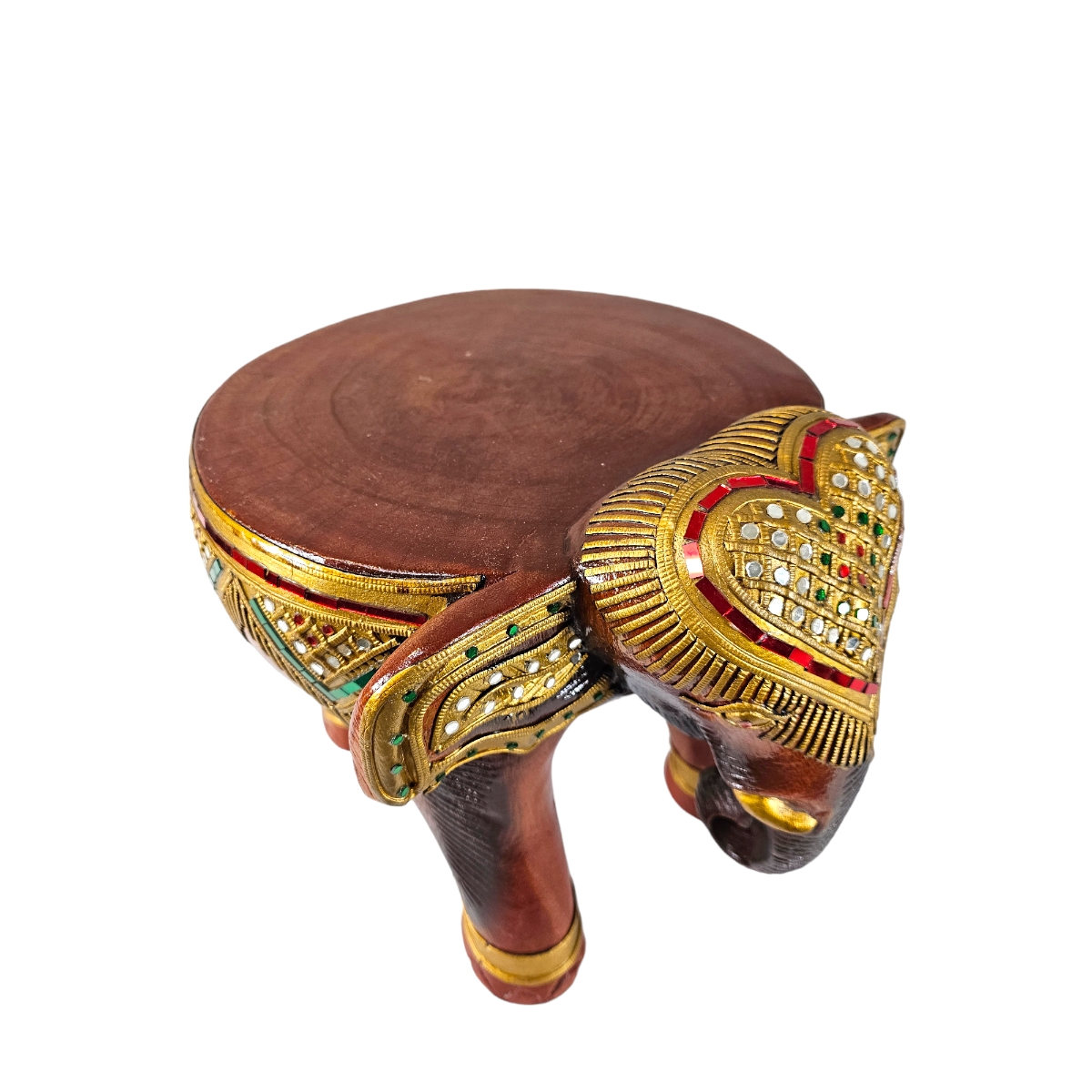 "Verleihen Sie Ihrem Wohnraum einen exotischen Touch mit unserem handgefertigten Elefanten Hocker. Diese einzigartige Kreation ist mit filigranen Mosaiksteinen verziert, die geschickt auf die Oberfläche des Hockers aufgetragen wurden, um eine aufwendige Darstellung eines majestätischen Elefanten zu schaffen. Hergestellt im fernen Thailand, verbindet dieser Hocker meisterhaftes Handwerk mit authentischem Design. Aber der Elefanten Hocker ist nicht nur ein visueller Genuss - es ist auch unglaublich vielseitig! Ja, seine robuste Konstruktion macht ihn zum perfekten Sitzplatz, aber er kann auch als einzigartiger Blumenständer verwendet werden. Stellen Sie Ihre schönsten Blumenpracht darauf und lassen Sie die natürliche Schönheit Ihrer Pflanzen in Kombination mit dem liebevollen Design des Hockers erstrahlen! Bestellen Sie noch heute und bringen Sie ein Stück Thailand und seine atemberaubende Handwerkskunst direkt zu Ihnen nach Hause!"