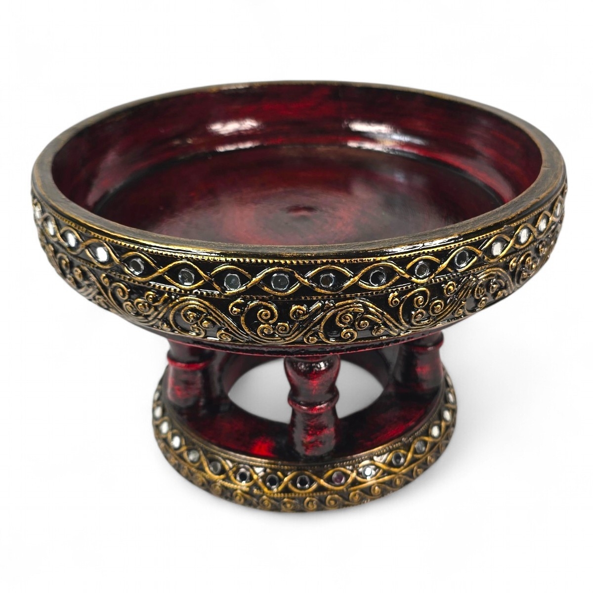 Verleihen Sie Ihrem Raum einen Hauch von Exotik und Eleganz mit unserem edlen Öl Tablett aus Thailand. Dieses wunderbar gestaltete Tablett, perfekt zum Tragen Ihrer Massageprodukte, kombiniert Funktionalität mit Ästhetik. Aus den feinsten Materialien mit traditionellen thailändischen Techniken gefertigt, bringt dieses Tablett eine Aura von Entspannung und Ruhe in jeden Raum. Aber das ist noch nicht alles - dieses vielseitige Stück kann auch als Obstschale verwendet werden, wodurch es nicht nur ästhetisch ansprechend, sondern auch praktisch ist. Gönnen Sie sich mit diesem Öl Tablett einen Hauch von Luxus und verwandeln Sie Ihre alltägliche Umgebung in ein stilvolles Wellness-Paradies.