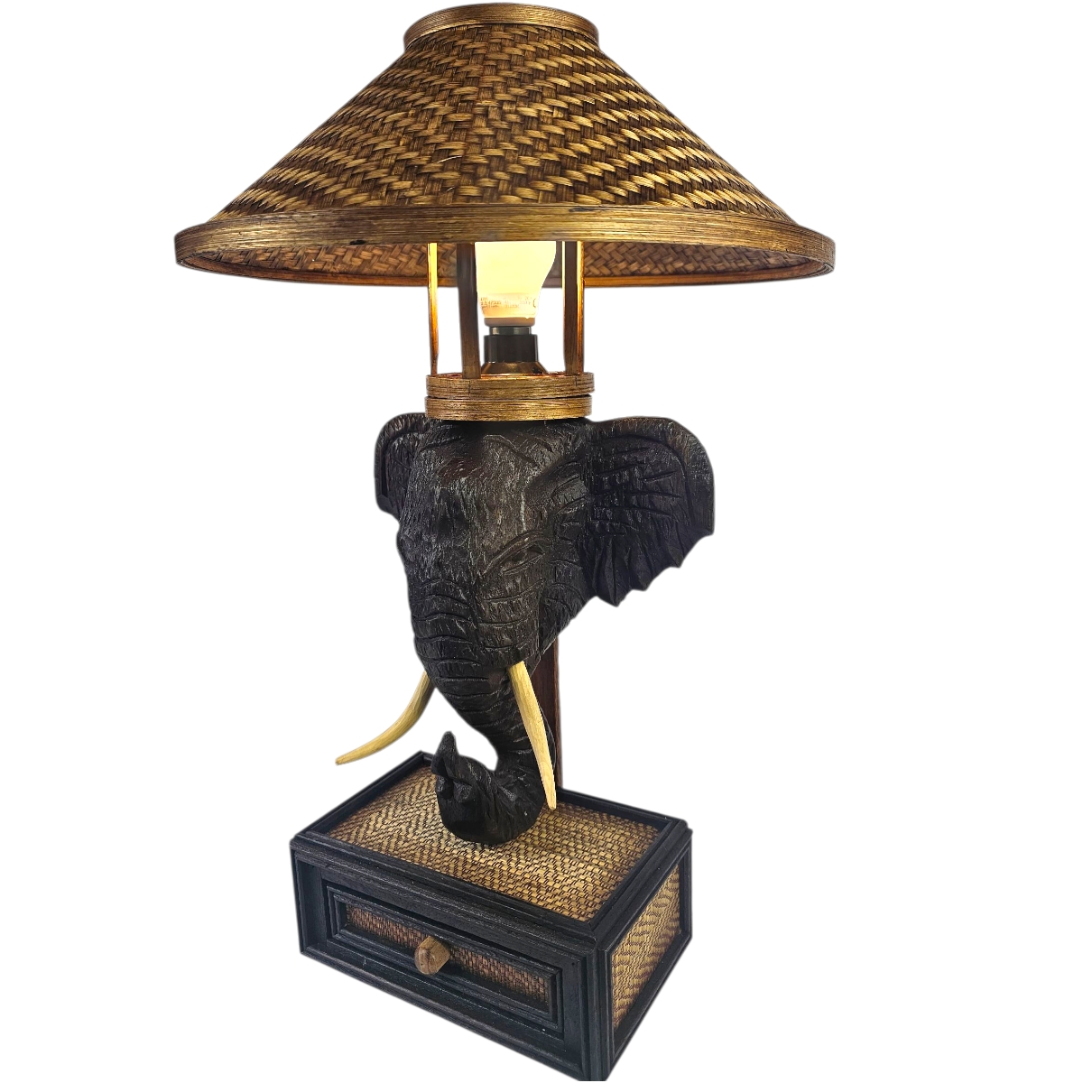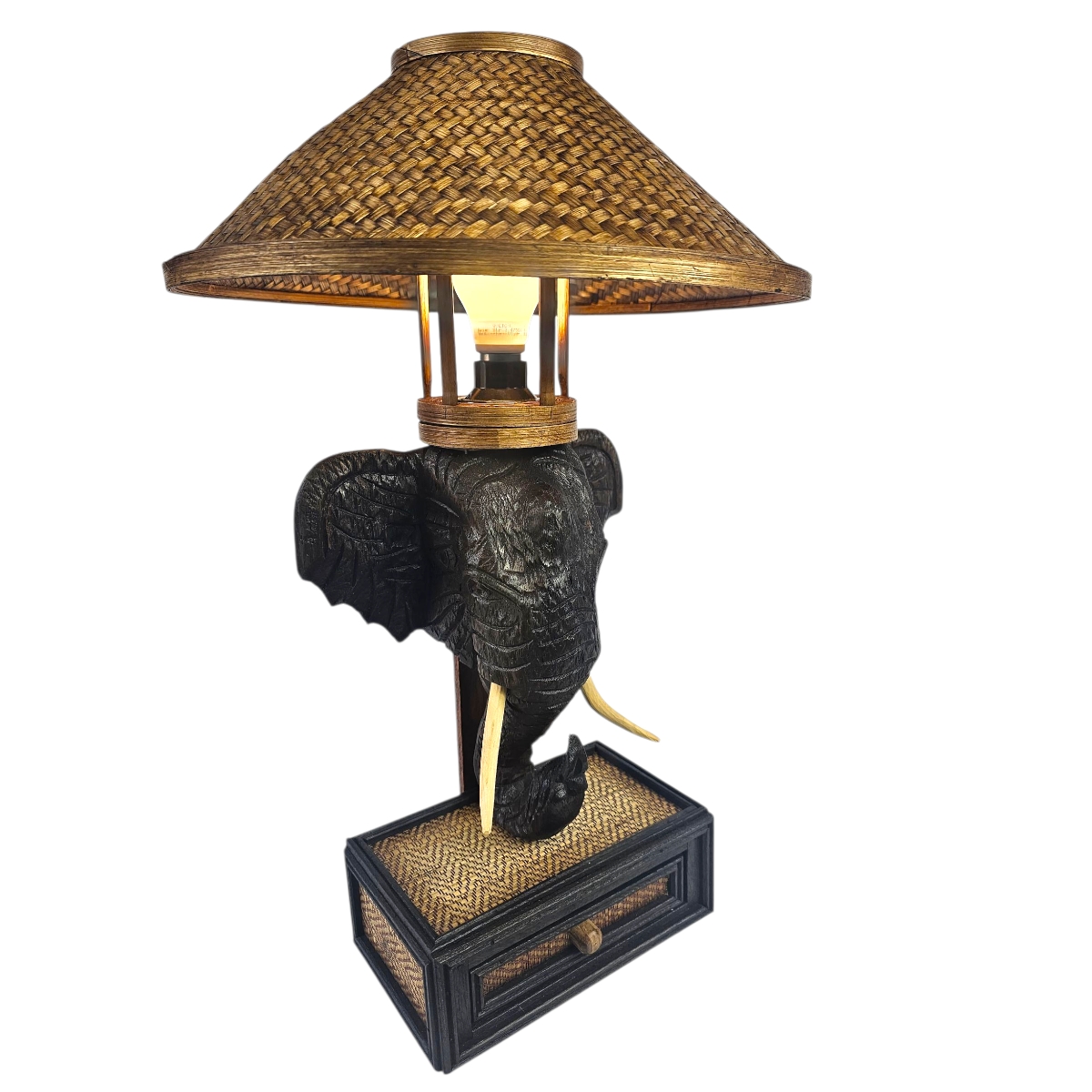 Entdecken Sie die funktionale Eleganz der Tischlampe Elefant, eine exklusive Dekoration für Ihr Zuhause. Diese exquisite Lampe kombiniert Tradition mit moderner Ästhetik und ist ein wahres Meisterwerk thailändischer Handwerkskunst.