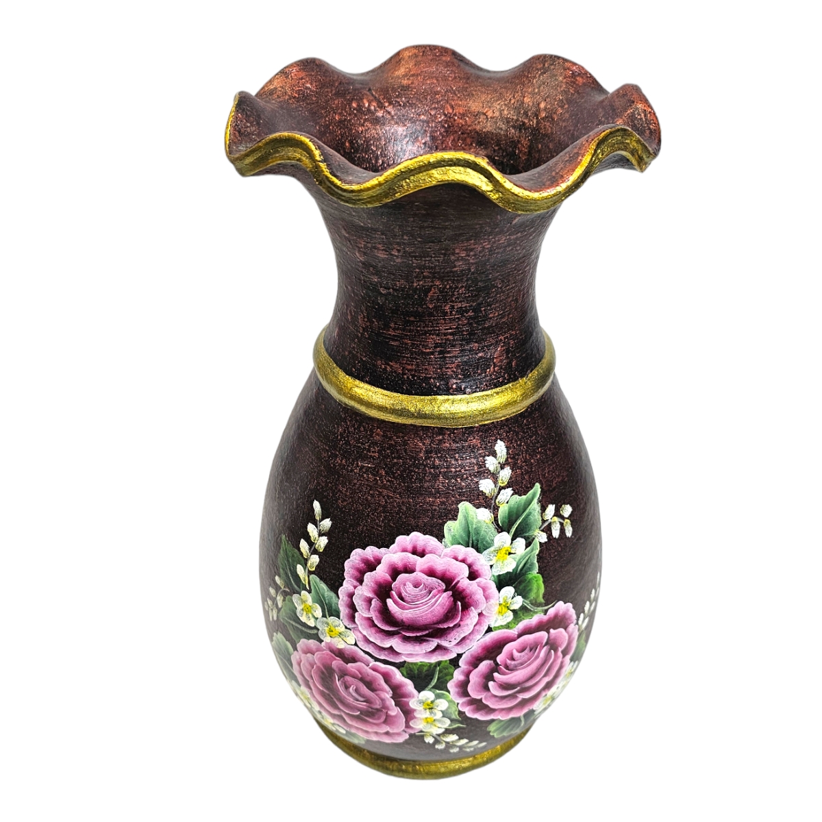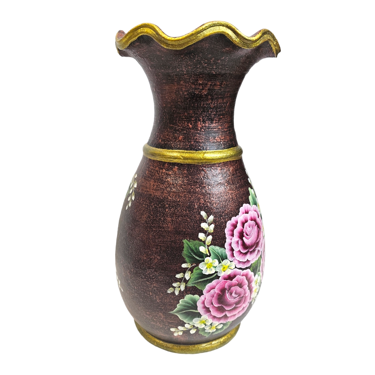 Entzücken Sie Ihr Zuhause mit dieser wundervoll handbemalten Vase aus Ton. Meisterhaft gefertigt in Thailand, ist dieses Stück eine verschönernde Ergänzung zu jeder Wohnkultur. Es ist detailreich bemalt mit lebhaften Blumenmotiven, die jedem Raum einen Hauch von Frische und Leichtigkeit verleihen. Diese Vase ist nicht nur ein funktionaler Behälter, sondern auch ein Kunstwerk für sich. Mit ihrem einzigartigen Design und ihrer faszinierenden Farbpalette ist diese Vase definitiv ein Blickfang. Umarmen Sie die Schönheit der Handwerkskunst und holen Sie sich noch heute diese bemalte Vase aus Ton nach Hause!