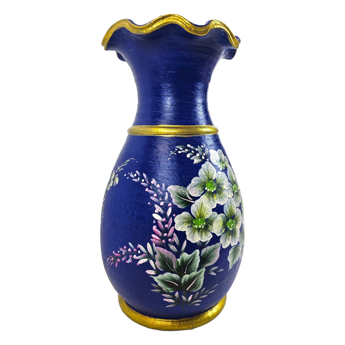Entzücken Sie Ihr Zuhause mit dieser wundervoll handbemalten Vase aus Ton. Meisterhaft gefertigt in Thailand, ist dieses Stück eine verschönernde Ergänzung zu jeder Wohnkultur. Es ist detailreich bemalt mit lebhaften Blumenmotiven, die jedem Raum einen Hauch von Frische und Leichtigkeit verleihen. Diese Vase ist nicht nur ein funktionaler Behälter, sondern auch ein Kunstwerk für sich. Mit ihrem einzigartigen Design und ihrer faszinierenden Farbpalette ist diese Vase definitiv ein Blickfang. Umarmen Sie die Schönheit der Handwerkskunst und holen Sie sich noch heute diese bemalte Vase aus Ton nach Hause!