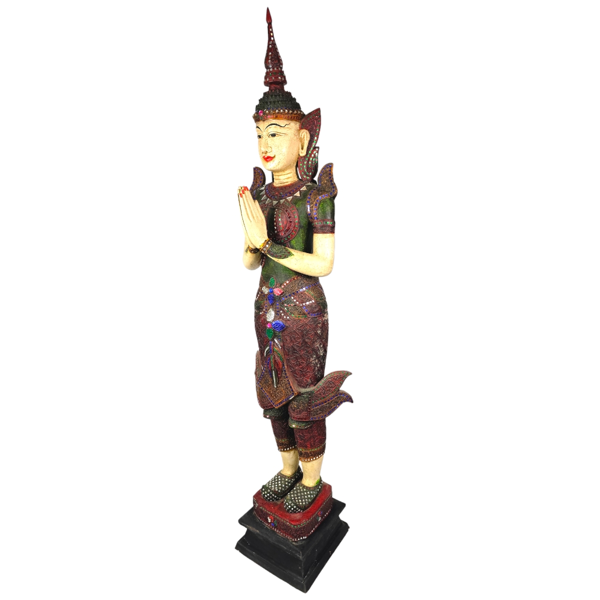 Lassen Sie die Ruhe und Gelassenheit Asiens in Ihr Zuhause einfließen mit dieser handgefertigten Buddha-Figur aus dem Norden Thailands. Jede Figur ist ein Unikat und strahlt ihre eigene, besondere Energie aus. Die filigrane Handarbeit und die Liebe zum Detail machen diese Buddha Figur zu einem echten Hingucker. Bewundern Sie das kunstvolle Design und die feinen Details, die ihr ein unvergleichbares Aussehen verleihen. Diese wunderschöne Dekoration kann nicht nur Ihr Zuhause aufwerten, sondern erinnert Sie auch täglich an die bedeutenden Weisheiten Buddhas. Tragen Sie etwas von dieser spirituellen Ruhe in Ihr Leben - eine Bereicherung für jeden Raum und jede Seele.