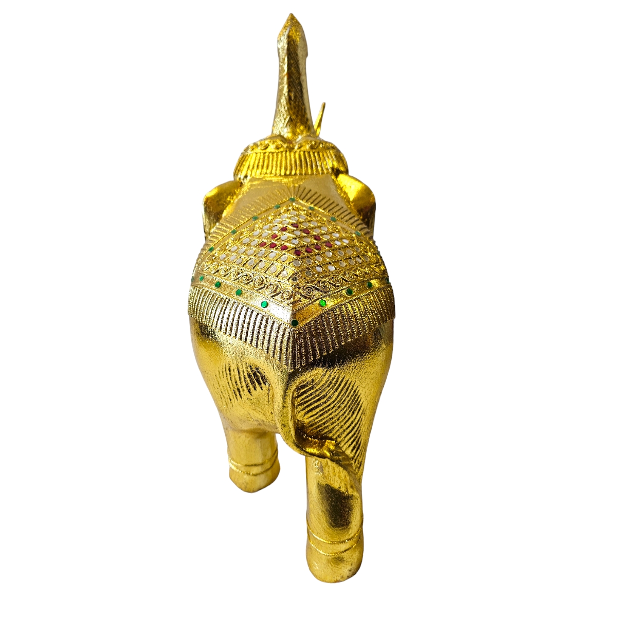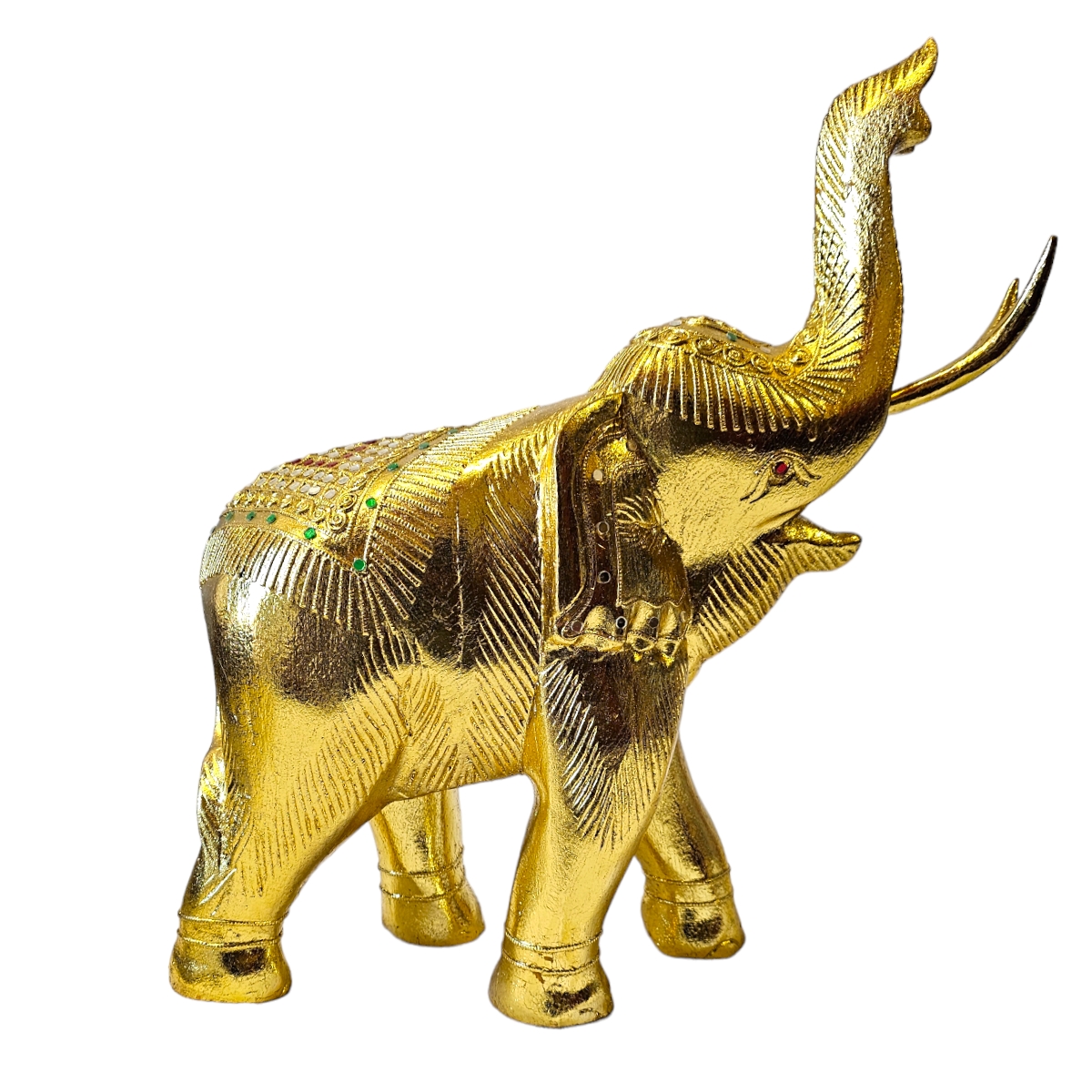 Dieser handgefertigte Elefant aus Holz ist nicht nur ein bemerkenswertes Kunstwerk, sondern auch ein Hauch von Exotik für Ihr Zuhause. Mit seiner goldenen Farbe und den sorgfältig angeordneten Mosaiksteinen strahlt er eine eindrucksvolle Pracht aus, die sicherlich die Aufmerksamkeit aller Betrachter auf sich zieht. In mühevoller Handarbeit in Thailand gefertigt, spiegelt jeder Zentimeter dieses atemberaubenden Stücks die unvergleichliche Kunstfertigkeit seiner Hersteller wider. Der Elefant symbolisiert in der thailändischen Kultur Stärke, Weisheit und Ausdauer und repräsentiert damit überzeugende Werte, die in jedes Zuhause integriert werden können. Dieser Holzelefant ist nicht nur ein Dekorationsobjekt, er erzählt auch eine Geschichte. Die individuelle Gestaltung von jedem einzelnen Mosaikstein lässt dieses Kunstwerk lebendig und einzigartig wirken, fast so, als ob ein Stück thailändische Kultur direkt zu Ihnen nach Hause geliefert würde.
