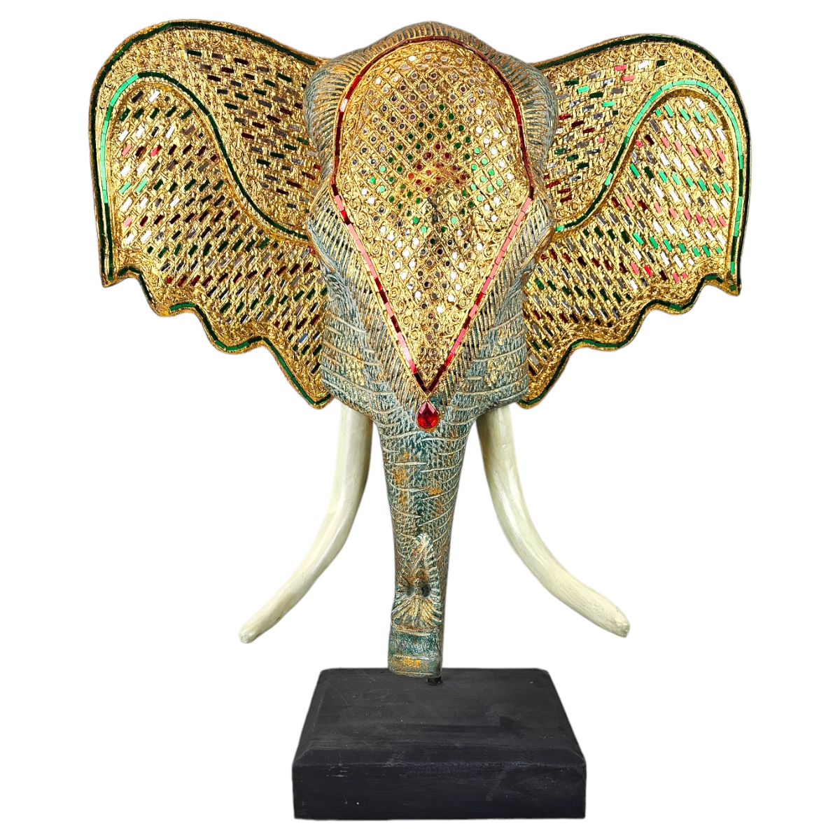 Stellen Sie sich mit dem handgefertigten Elefantenkopf aus Holz eine exotische, verzaubernde Atmosphäre direkt in Ihr Zuhause. Kompetent gearbeitet in Thailand, ist jedes Stück ein Unikat, durch das Sie einen Hauch von fernöstlicher Kultur erleben können. Jedes Detail des Elefanten wurde sorgfältig gestaltet, um seine majestätische Schönheit widerzuspiegeln. Mosaiksteine, die kunstvoll an einem robusten Ständerwerk befestigt sind, verleihen diesem Produkt zusätzlichen Glanz und Reflektion, wodurch Anspruch und Eleganz unterstrichen werden. Der Holzelefantenkopf ist nicht nur ein auffälliger Blickfang, sondern erzählt auch eine Geschichte von Handwerkskunst und Tradition. Machen Sie ihr Zuhause zu einem Ort voller Seele und Charakter. Der Elefantenkopf aus Holz transportiert eine tiefe Symbolik und fügt Ihrem Zuhause eine ästhetische und zugleich tiefgründige Dimension hinzu. Verschönern Sie Ihre Wohnkultur und lassen Sie sich ins Land der Tempel und Tuk-Tuks entführen.