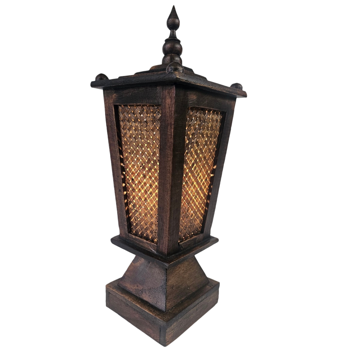 Erleben Sie die faszinierende Ausstrahlung unserer asiatischen Lampe - handgefertigt in Thailand. Gefertigt aus edlem Holz, in sorgfältiger Handarbeit, bringt diese Lampe eine einzigartige und authentische Atmosphäre in Ihr Zuhause. Sie wird von talentierten thailändischen Handwerkern hergestellt und erzählt so ihre eigene Geschichte. Das warme, sanfte Licht, das durch die geschmackvollen Seitenwände aus Holz streut, schafft in jeder Umgebung eine warme und einladende Atmosphäre. Die Lampe ist mit einer E27 Fassung ausgestattet und eignet sich perfekt als Tischlampe. Stellen Sie sie auf einem Beistelltisch, Schreibtisch oder Nachttisch auf, um Ihrem Raum eine gemütliche und behagliche Atmosphäre zu verleihen. Unsere asiatische Lampe ist nicht nur eine Lichtquelle, sondern auch ein Statement. Sie steht für Geschmack, Stil und das Bewusstsein für hochwertige Handwerkskunst. Lassen Sie sich von ihrer Einzigartigkeit und Schönheit verzaubern. Erleben Sie mit unserer asiatischen Lampe die harmonische Verschmelzung von traditioneller Handwerkskunst und zeitgenössischem Design. Lassen Sie diese einzigartige Lampe ein fesselndes Highlight in Ihrem Interieur sein. Sie werden von der sorgfältigen Verarbeitung und besonderen Ausstrahlung begeistert sein. Verleihen Sie Ihrem Zuhause mit unserer asiatischen Holzlampe einen Hauch von Exotik. Sie ist nicht nur eine Lampe, sondern Kunst.