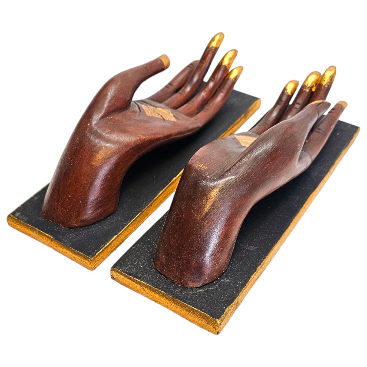 Buddha Hände - ein Stück spirituelle Harmonie für Ihr Zuhause. Diese einzigartigen Kunstwerke sind direkt aus Thailand handgefertigt und bringen Frieden und Ruhe in jede Umgebung. Jedes Detail der Buddha Hände, die kunstvoll an einem Holz befestigt sind, zeigt die exquisite Handwerkskunst unserer talentierten Kunsthandwerker. Die Buddha Hände sind nicht nur ein ästhetisches Highlight, sondern auch ein Symbol für spirituelle Erleuchtung und inneren Frieden. Sie können diese wunderschönen Stücke problemlos an jeder Wand befestigen, um sofort Wärme und Serenität in Ihr Zuhause zu bringen. Erschaffen Sie Ihre eigene Oase der Ruhe mit unseren handgefertigten Buddha Händen.