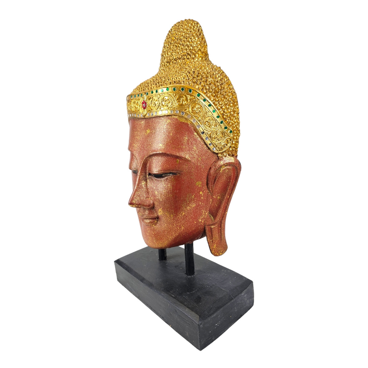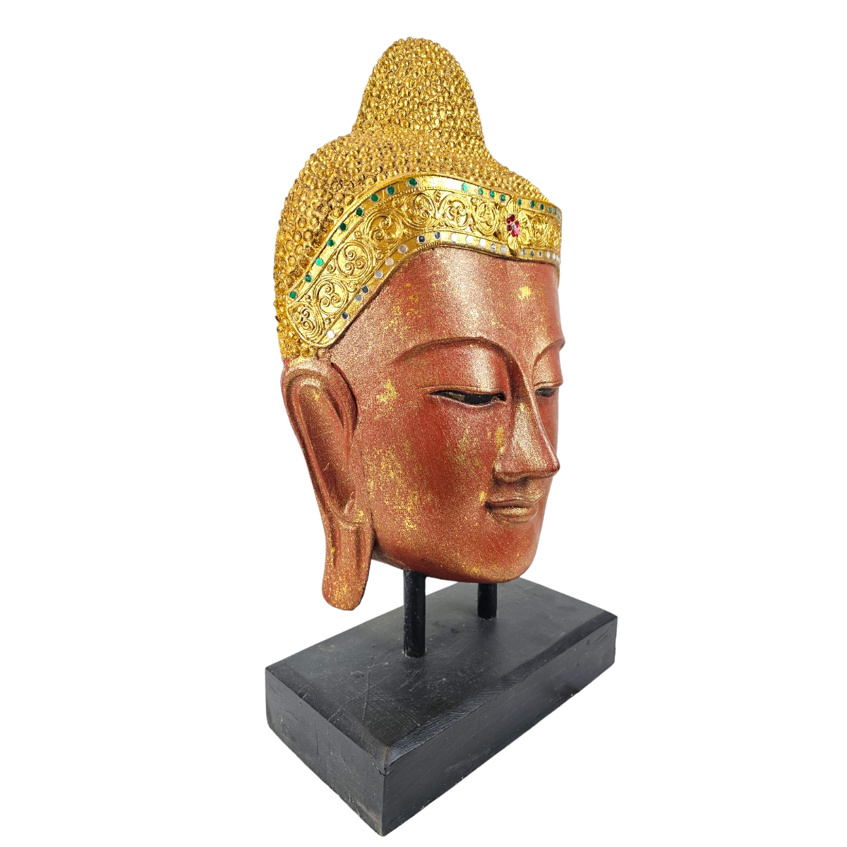 Bewundern Sie die raffinierte Kunstfertigkeit unseres handgefertigten Buddha-Kopfes, direkt importiert aus dem schönen Thailand. Dieses wunderbare Stück, gestaltet mit beeindruckenden Details, ist aus edlem Holz geschnitzt und stolz auf einem Ständer präsentiert. Der Buddha-Kopf symbolisiert Weisheit und Frieden und verleiht jedem Raum eine ruhige und harmonische Atmosphäre. Jedes Stück wird liebevoll von Hand gefertigt, wodurch jedes Exemplar einzigartig ist. Hiermit bekommen Sie nicht nur ein schönes Dekorationsobjekt, sondern auch ein Stück thailändischer Handwerkskunst. Bereichern Sie ihre Wohnkultur mit unserem Buddha-Kopf und schaffen Sie einen Ort der Meditation und Ruhe.