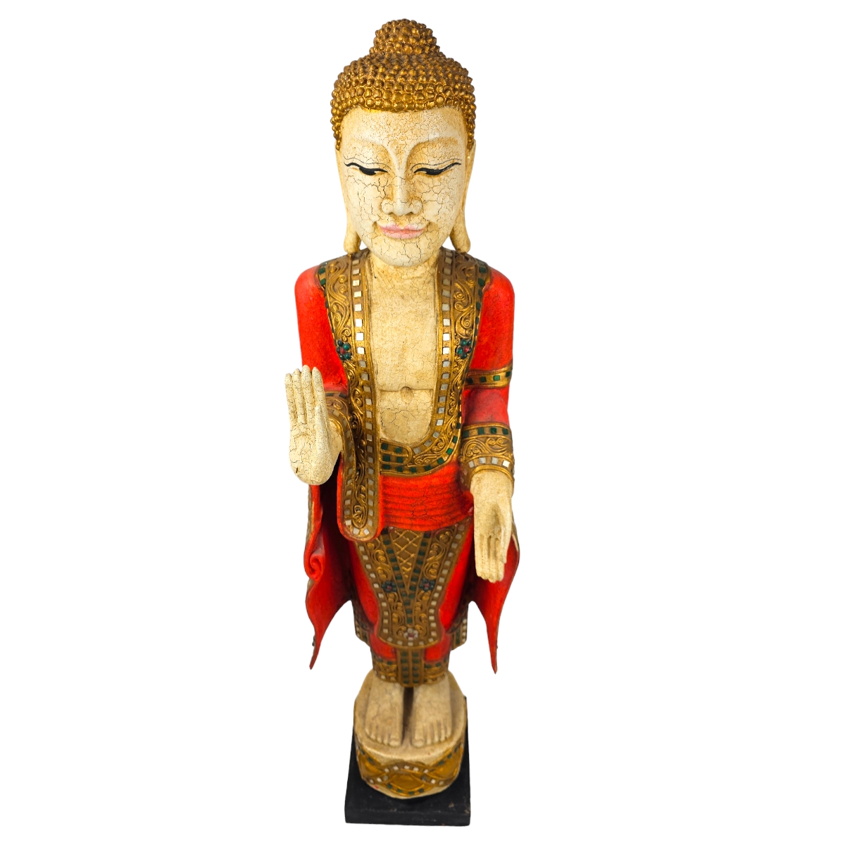 Diese handgefertigte Buddha-Figur aus Thailand ist mehr als nur ein Dekorationsstück. Geformt aus feinstem Holz verkörpert sie Spiritualität und Ruhe, bringt Harmonie in jeden Raum und bietet einen Ort der Meditation und inneren Einkehr. Jede Figur ist ein Unikat, in die Handwerkskunst und Liebe zum Detail eingeflossen sind, was sie zu einem außergewöhnlichen Geschenk oder einzigartigem Schmuckstück Ihrer Einrichtung macht. Betonen Sie Ihre Wohlfühloase mit dieser ausdrucksstarken Buddha-Figur und bringen Sie einen Hauch von Thailand in Ihr Zuhause.
