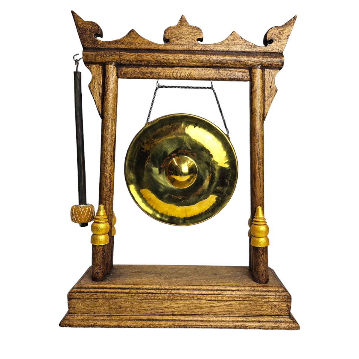 Erwecken Sie Ihre Räume zum Leben mit unserem exquisiten Gong! Handgefertigt in Thailand, ist dieser Gong mehr als nur ein Musikinstrument - er ist ein echtes Kunstwerk. Der Rahmen besteht aus feinstem Holz, das gekonnt geschnitzt und nach traditionellen Techniken verarbeitet wurde. Egal, ob Sie Ihrem Raum ein einzigartiges Flair verleihen, meditative Schwingungen erzeugen oder einfach nur ein Instrument von unvergleichlicher Qualität wünschen - unser Gong ist die perfekte Wahl. Elegant, intelligent und simple Bauweise zugleich. Erleben Sie das wunderschöne Zusammenspiel von Design und Sound. Unsere Leidenschaft für hervorragende Handwerkskunst ist in jedem Detail sichtbar. Bestellen Sie Ihren Gong noch heute und bringen Sie Klang und Schönheit in Ihr Zuhause.