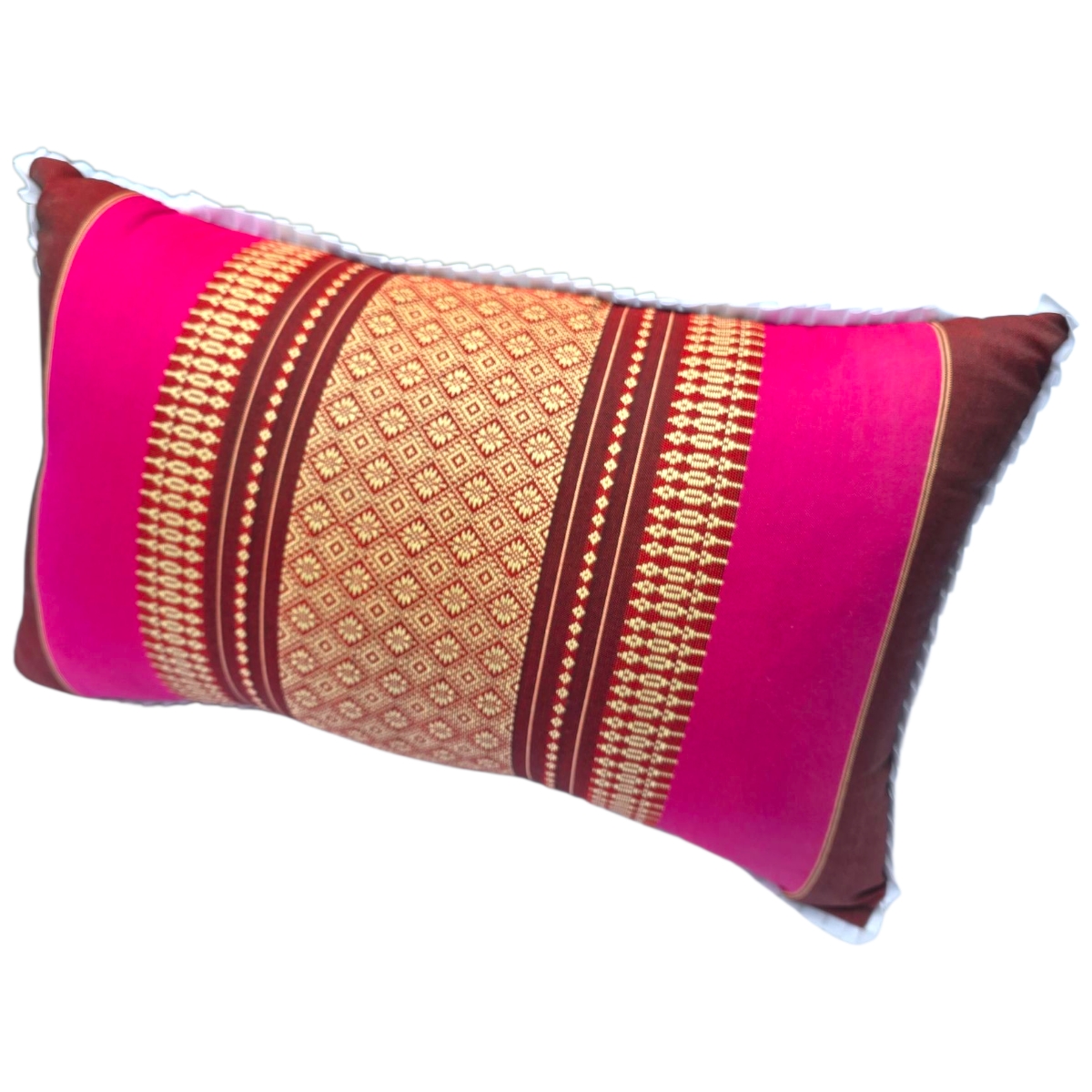 Erleben Sie ein Stück Fernost in Ihrem Zuhause mit unserem handgemachten Kopfkissen aus Thailand! Gefüllt mit 100 % natürlichem Kapok und umhüllt von einem weichen Baumwollbezug, vereint dieses Kissen höchsten Komfort mit exotischem Flair.