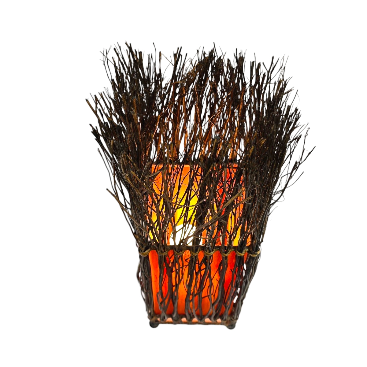 - Außendesign: Die Oberfläche ist liebevoll mit kleinen, authentischen Ästen verziert, die jeder Lampe einen individuellen und natürlichen Charme verleihen.