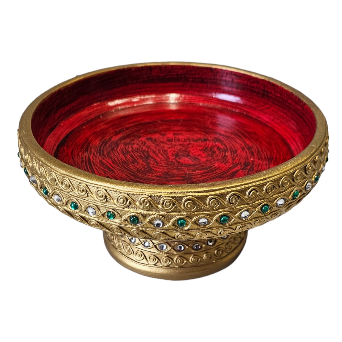 Erleben Sie eine zauberhafte Harmonie von Natur und Kultur mit unserer Öl Tablette. Aus feinstem Holz in Thailand handgefertigt, ist dieses wunderbare Produkt das Ergebnis von kunstvoller Handwerkskunst und jahrhundertealter Tradition. Jedes Stück wird sorgfältig von erfahrenen Handwerkern bearbeitet, um seine natürliche Schönheit und Einzigartigkeit hervorzuheben. Doch was diese Öl Tablette besonders macht, ist das farbenfrohe Mosaik aus Steinen, die in ein meisterhaftes Design eingebettet sind. Diese gewagte Farbgebung verleiht jedem Stück ein individuelles und lebendiges Aussehen und macht es zum perfekten Blickfang für Ihr Zuhause oder Büro. Unsere Öl Tablette verbindet funktionalen Nutzen und ästhetischen Charme in einem Produkt – ein Muss für jede moderne Lebensraumgestaltung. Benutzen Sie es als Aromatherapie-Gerät oder einfach als stilvolles Dekorationsobjekt, das Farbe in Ihren Alltag bringt. Tauchen Sie ein in das exotische Flair von Thailand mit unserer Öl Tablette, dem perfekten Zusammenspiel von Handwerkskunst und Natur.