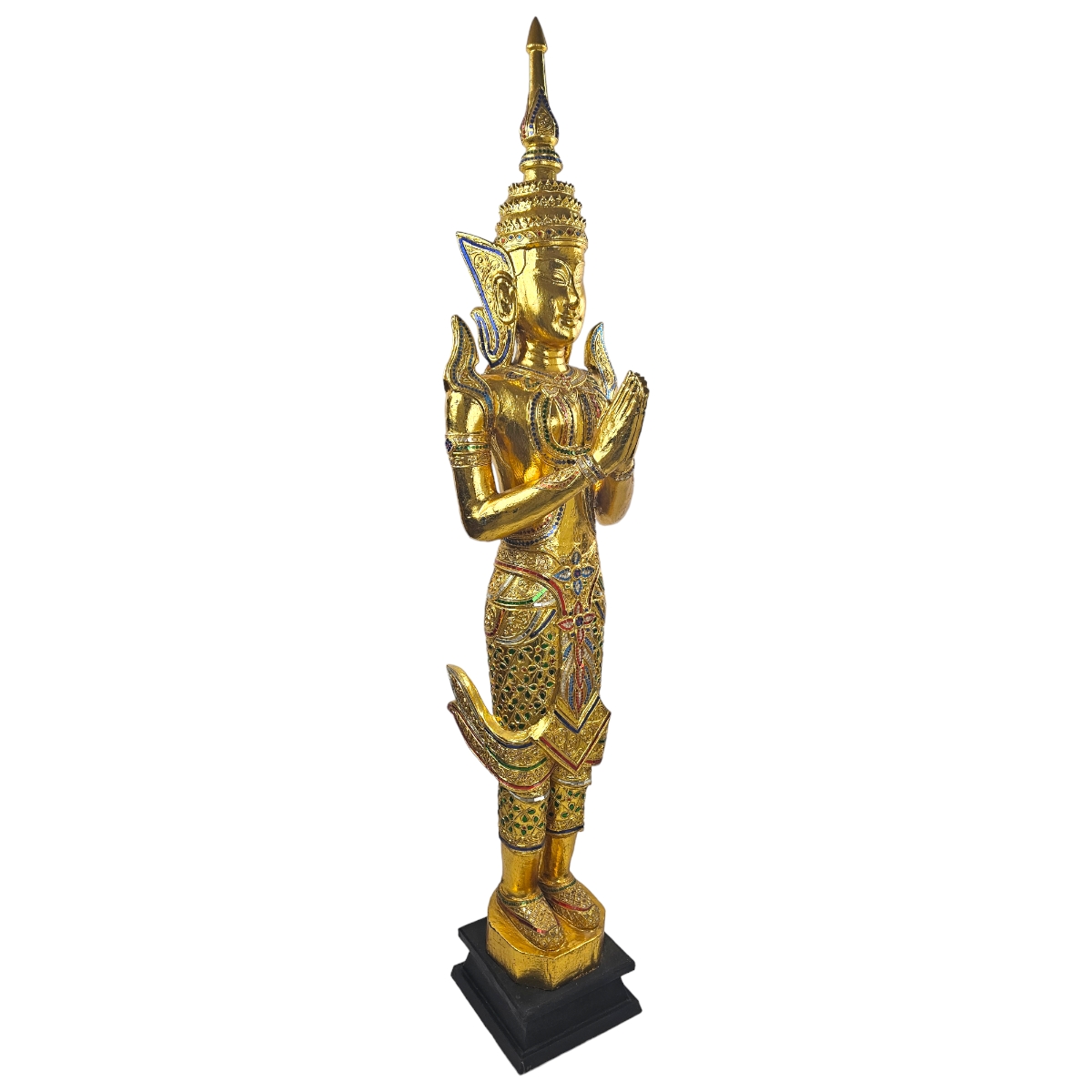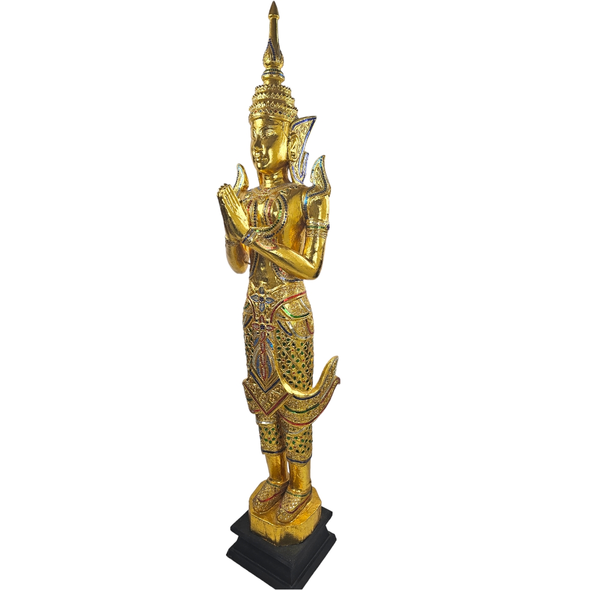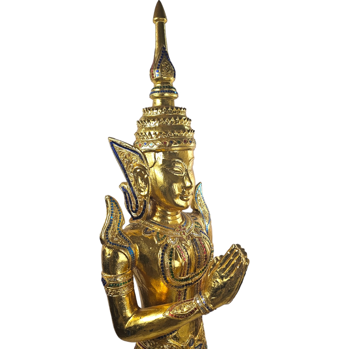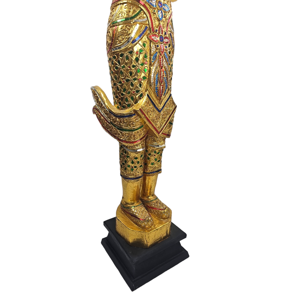 Schaffen Sie eine Atmosphäre von Frieden und Gelassenheit mit diesem handgefertigten Buddha aus Thailand. Unser Buddha ist ein echtes Unikat und strahlt spirituelle Ruhe und eine bezaubernde Energie aus. Gefertigt aus Holz, ist es in einer goldener Farbe gehalten, die an die Götterstatuen alter Tempel erinnert. Hervorzuheben ist die detailverliebte Verzierung mit Mosaiksteinen, die den Buddha in ein mystisches Licht tauchen. Diese einzigartige Mischung aus traditionellem Kunsthandwerk und modernem Design macht diesen Buddha zum absoluten Highlight in jedem Raum. Egal ob Sie nach einem Stück Spiritualität für Ihr Zuhause suchen oder ein besonderes Geschenk für einen geliebten Menschen - Unser Alt Schwarzer Buddha ist mehr als nur eine Dekoration. Er ist ein Symbol für innere Ruhe und Gelassenheit, handgefertigt mit viel Liebe zum Detail. Entdecken Sie die Faszination dieses einzigartigen und spirituellen Kunstwerks. Bestellen Sie Ihren Alt Schwarzen Buddha noch heute!