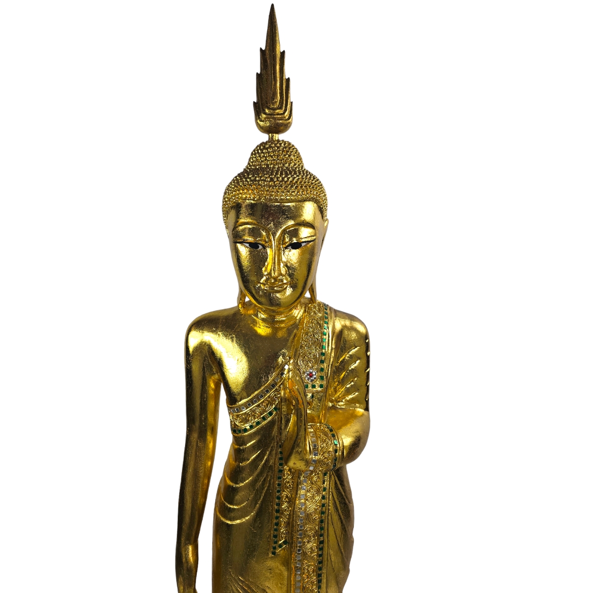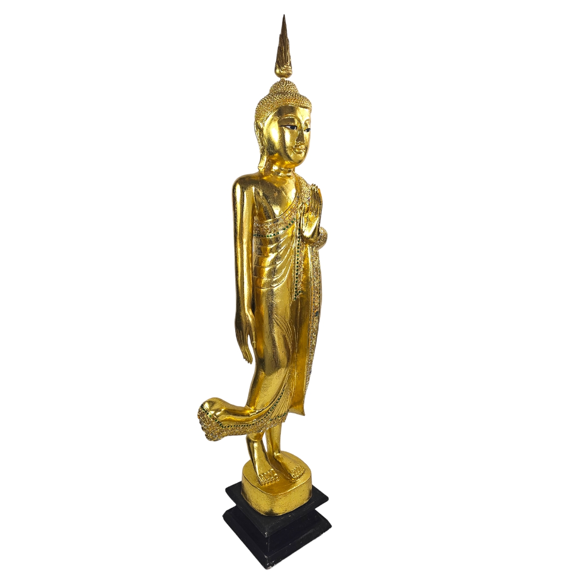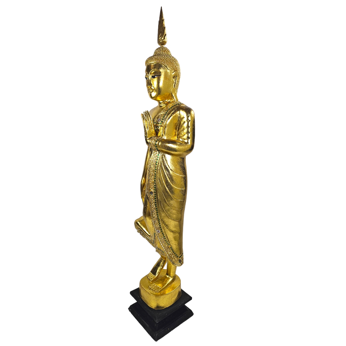 Erleben Sie ein Stück thailändischer Handwerkskunst mit unserem einzigartigen, goldenen Buddha, prächtig verziert mit funkelnden Mosaiksteinen. Handgefertigt aus hochwertigem Holz, ist dieser Buddha ein echtes Unikat und versteht es, durch sein detailgenaues Design zu faszinieren. Die sanften Konturen und die warmen, goldenen Töne schaffen ein harmonisches Ambiente, während das reiche Mosaikmuster einen exotischen Flair verleiht. Dieser Buddha ist mehr als nur eine Dekoration - er ist ein Ausdruck von Ruhe, Eleganz und spiritueller Tiefe. Lassen Sie sich von seiner majestätischen Präsenz inspirieren und tauchen Sie ein in eine Welt der inneren Ruhe und Gelassenheit.