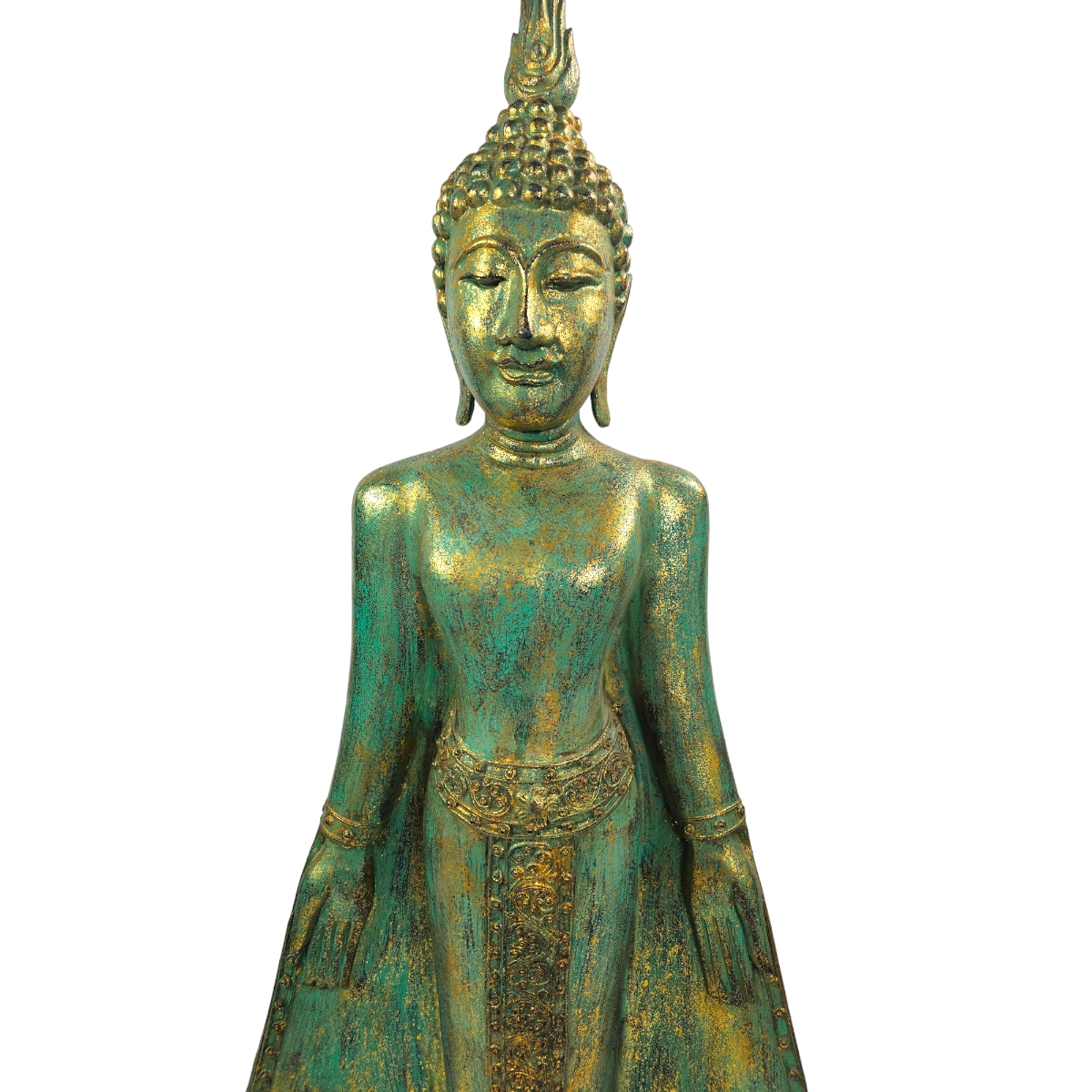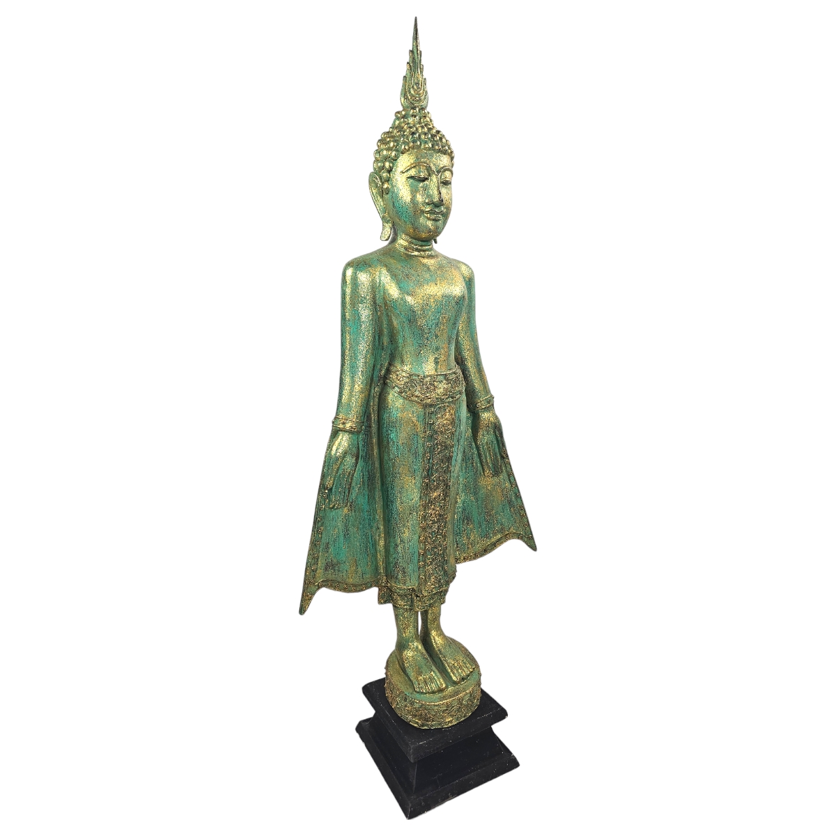 Entdecken Sie die zauberhafte Buddha-Statue in Grün – ein handgefertigtes Meisterwerk aus Thailand! Mit einer beeindruckenden Höhe von 130 cm strahlt diese Statue Harmonie und Frieden aus. Die sanfte, grüne Farbe fügt einen Hauch von Natur und Ruhe hinzu, wodurch sie perfekt in jeden Raum passt, sei es im Wohnzimmer, Büro oder Garten. Dank der sorgfältigen Handarbeit und der hochwertigen Materialien wird diese Statue zu einem außergewöhnlichen Blickfang, der Ihre Umgebung mit positiver Energie erfüllt. Erleben Sie die Magie des Buddhismus in Ihrem Zuhause mit dieser einzigartigen, grünen Buddha-Statue!