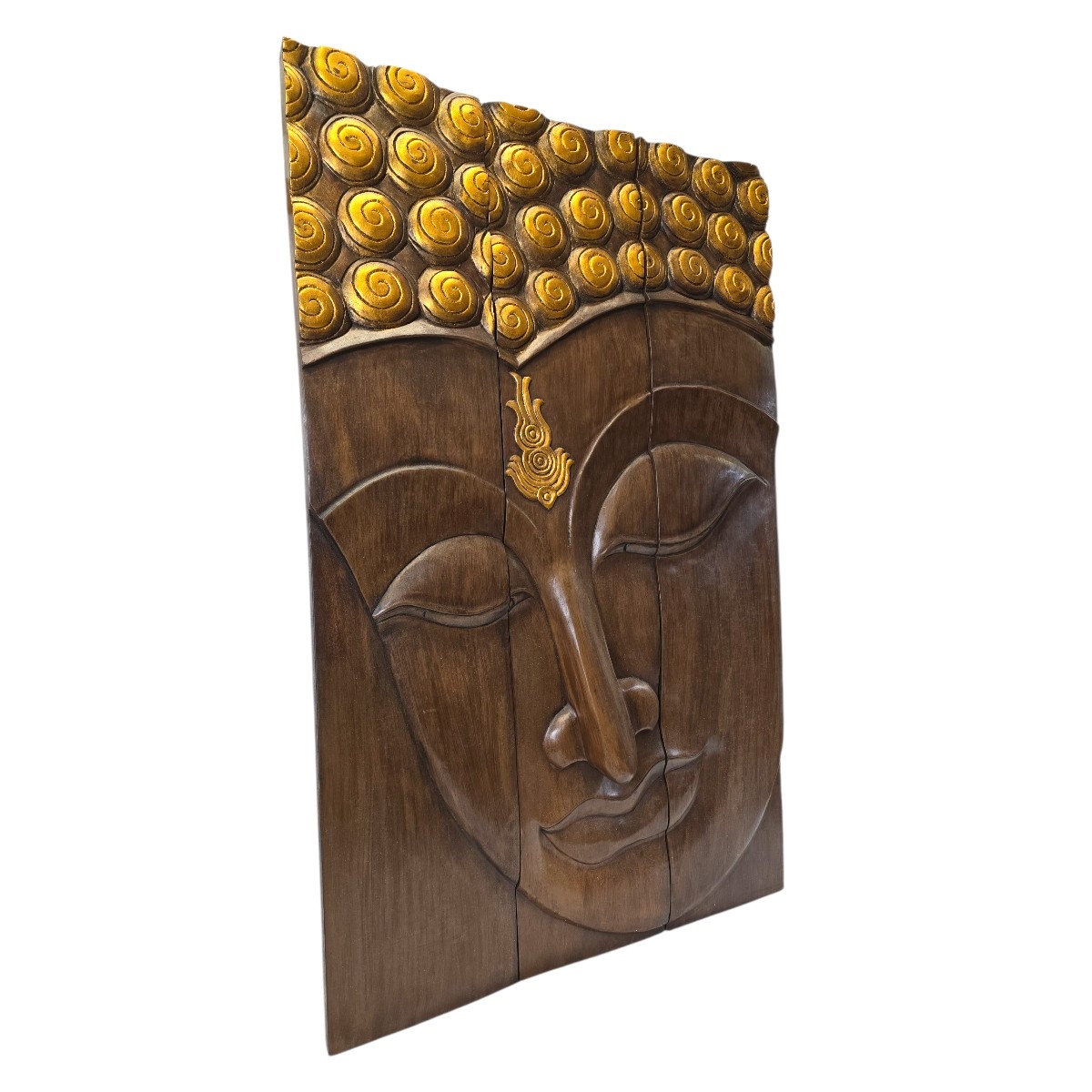 Eben Sie die Schönheit und Ruhe des Ostens in Ihrem Zuhause mit unserem exquisiten 3-teiligen Buddha Kopf Relief. Dieses handgefertigte Kunstwerk aus Thailand ist ein Meisterstück traditioneller Handwerkskunst und verkörpert die zeitlose Weisheit und Gelassenheit Buddhas.