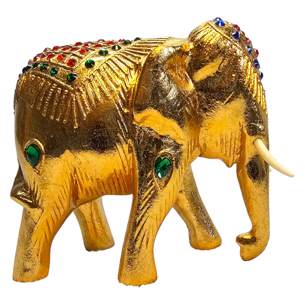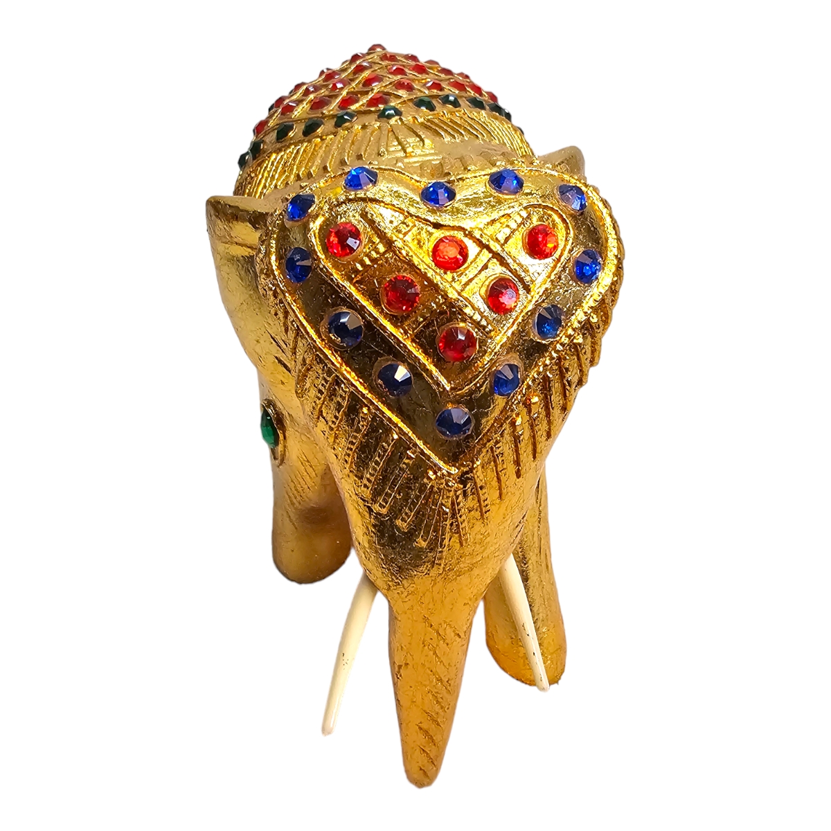 Dieser handgefertigte Elefant aus Holz ist nicht nur ein bemerkenswertes Kunstwerk, sondern auch ein Hauch von Exotik für Ihr Zuhause. Mit seiner goldenen Farbe und den sorgfältig angeordneten Mosaiksteinen strahlt er eine eindrucksvolle Pracht aus, die sicherlich die Aufmerksamkeit aller Betrachter auf sich zieht. In mühevoller Handarbeit in Thailand gefertigt, spiegelt jeder Zentimeter dieses atemberaubenden Stücks die unvergleichliche Kunstfertigkeit seiner Hersteller wider. Der Elefant symbolisiert in der thailändischen Kultur Stärke, Weisheit und Ausdauer und repräsentiert damit überzeugende Werte, die in jedes Zuhause integriert werden können. Dieser Holzelefant ist nicht nur ein Dekorationsobjekt, er erzählt auch eine Geschichte. Die individuelle Gestaltung von jedem einzelnen Mosaikstein lässt dieses Kunstwerk lebendig und einzigartig wirken, fast so, als ob ein Stück thailändische Kultur direkt zu Ihnen nach Hause geliefert würde.