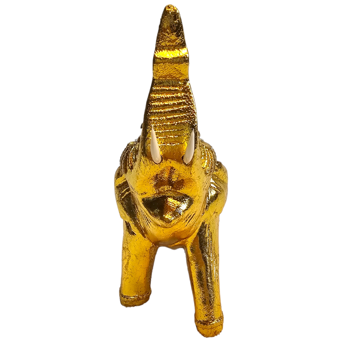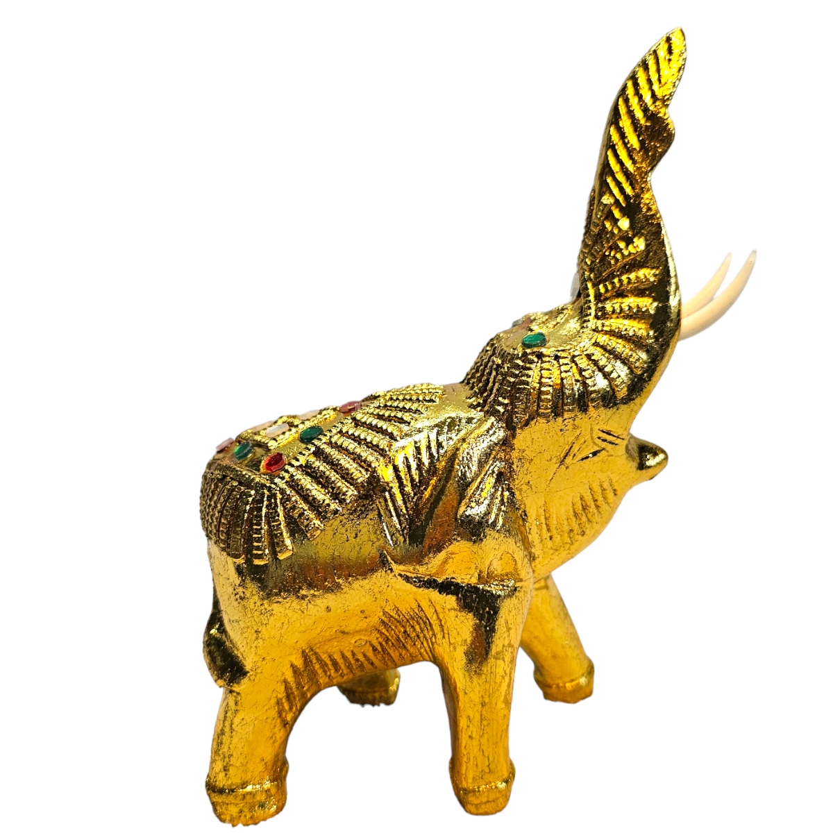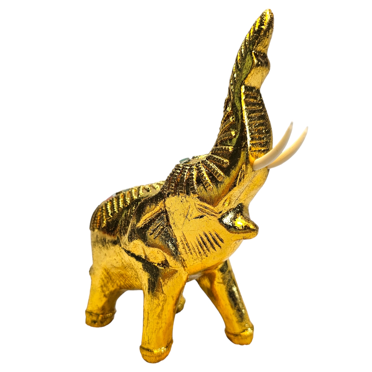 Dieser handgefertigte Elefant aus Holz ist nicht nur ein bemerkenswertes Kunstwerk, sondern auch ein Hauch von Exotik für Ihr Zuhause. Mit seiner goldenen Farbe und den sorgfältig angeordneten Mosaiksteinen strahlt er eine eindrucksvolle Pracht aus, die sicherlich die Aufmerksamkeit aller Betrachter auf sich zieht. In mühevoller Handarbeit in Thailand gefertigt, spiegelt jeder Zentimeter dieses atemberaubenden Stücks die unvergleichliche Kunstfertigkeit seiner Hersteller wider. Der Elefant symbolisiert in der thailändischen Kultur Stärke, Weisheit und Ausdauer und repräsentiert damit überzeugende Werte, die in jedes Zuhause integriert werden können. Dieser Holzelefant ist nicht nur ein Dekorationsobjekt, er erzählt auch eine Geschichte. Die individuelle Gestaltung von jedem einzelnen Mosaikstein lässt dieses Kunstwerk lebendig und einzigartig wirken, fast so, als ob ein Stück thailändische Kultur direkt zu Ihnen nach Hause geliefert würde.
