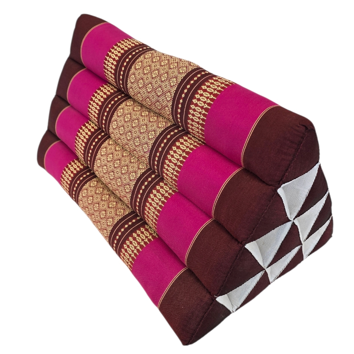 Entdecken Sie den Komfort und die Vielseitigkeit unseres Thai Dreieckskissens, das sich ideal als Kopf-, Rücken- oder Beinkissen eignet. Handgefertigt mit einem traditionellen Bezug und gefüllt mit Kapok, einer natürlichen Faser mit außergewöhnlichen Eigenschaften.