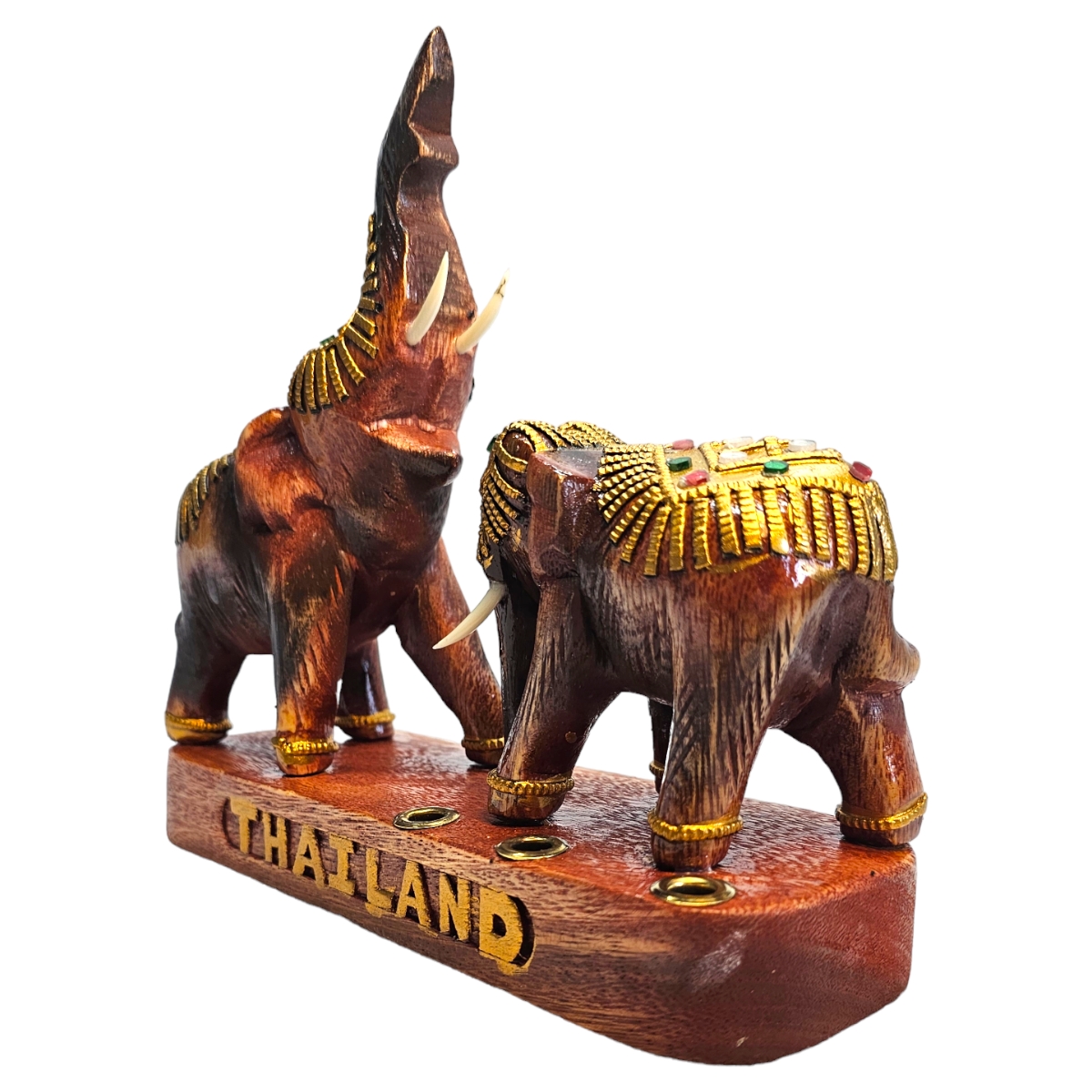 Erfrischen Sie Ihren Wohnraum mit unserer eindrucksvollen Thai Dekoration - zwei reizende Elefanten künstvoll auf einem Holzstück errichtet. Die schlichte Schönheit dieser Kunst, mit der Schrift "Thailand" elegant darauf eingraviert, verwandelt Ihr Zuhause in eine exotische Oase. Gefertigt mit leuchtenden Mosaiksteinen, liefern diese Elefanten ein spektakuläres Farbenspiel, das jeden Raum aufhellt. Das warme, natürliche Holz fügt sich nahtlos in jedes bestehende Dekor ein und verleiht ihm einen Hauch von rustikaler Schönheit. Diese Thai Dekoration ist nicht nur ein Hingucker, sondern bietet auch eine Augenweide, die Sie Jahr für Jahr bewundern können. Lassen Sie sich von der natürlichen Schönheit Thailands verzaubern und bringen Sie ein Stück dieses tropischen Paradieses in Ihr Heim!