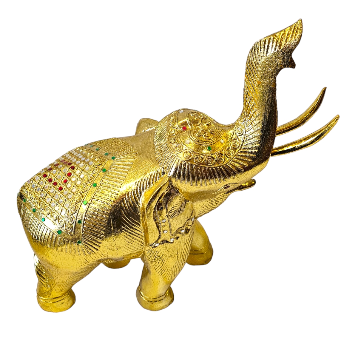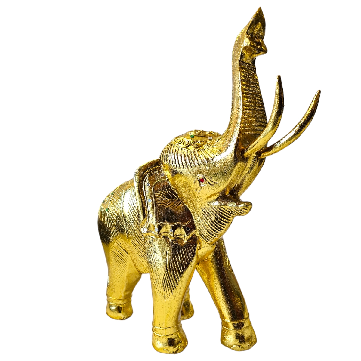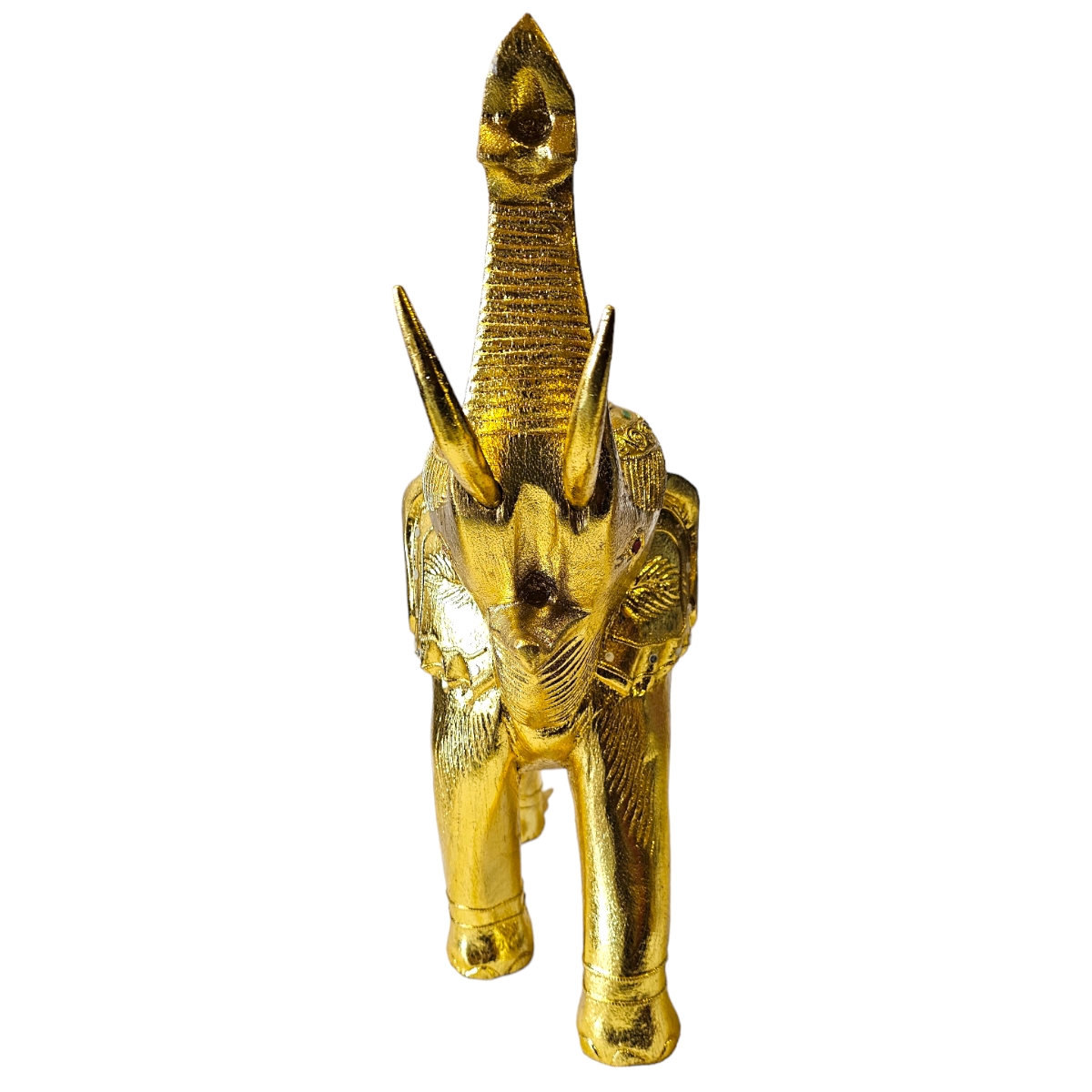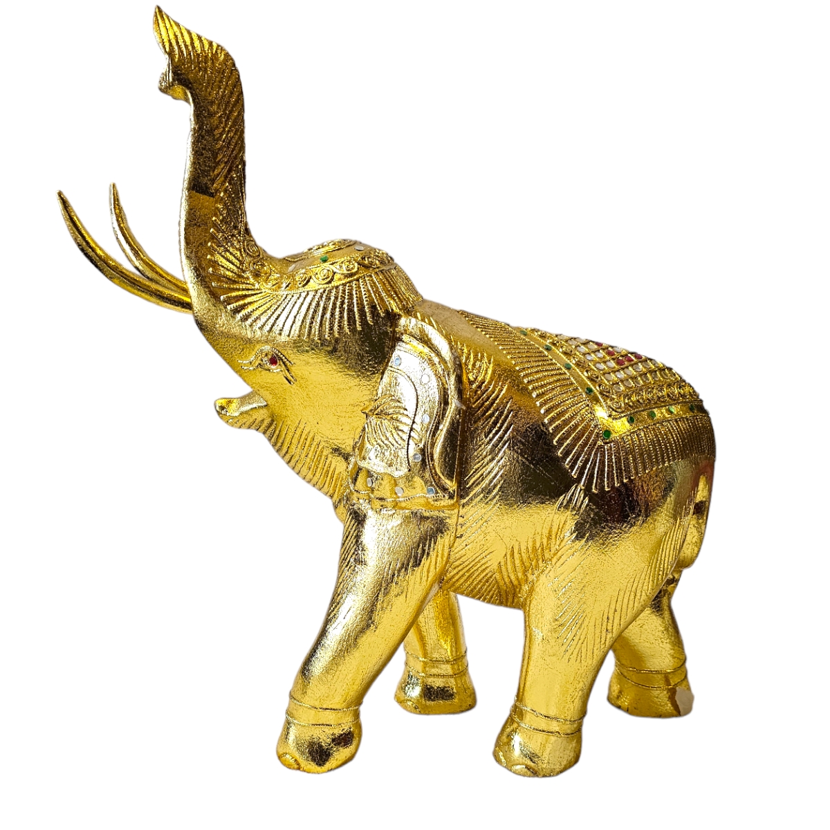 Dieser handgefertigte Elefant aus Holz ist nicht nur ein bemerkenswertes Kunstwerk, sondern auch ein Hauch von Exotik für Ihr Zuhause. Mit seiner goldenen Farbe und den sorgfältig angeordneten Mosaiksteinen strahlt er eine eindrucksvolle Pracht aus, die sicherlich die Aufmerksamkeit aller Betrachter auf sich zieht. In mühevoller Handarbeit in Thailand gefertigt, spiegelt jeder Zentimeter dieses atemberaubenden Stücks die unvergleichliche Kunstfertigkeit seiner Hersteller wider. Der Elefant symbolisiert in der thailändischen Kultur Stärke, Weisheit und Ausdauer und repräsentiert damit überzeugende Werte, die in jedes Zuhause integriert werden können. Dieser Holzelefant ist nicht nur ein Dekorationsobjekt, er erzählt auch eine Geschichte. Die individuelle Gestaltung von jedem einzelnen Mosaikstein lässt dieses Kunstwerk lebendig und einzigartig wirken, fast so, als ob ein Stück thailändische Kultur direkt zu Ihnen nach Hause geliefert würde.