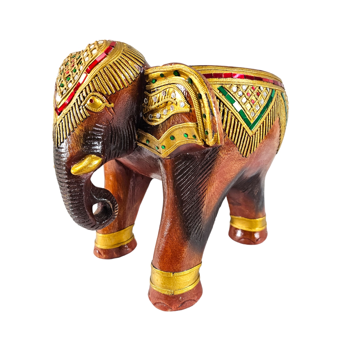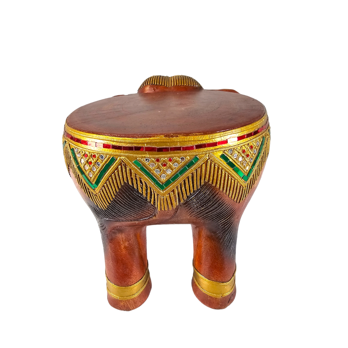 "Verleihen Sie Ihrem Wohnraum einen exotischen Touch mit unserem handgefertigten Elefanten Hocker. Diese einzigartige Kreation ist mit filigranen Mosaiksteinen verziert, die geschickt auf die Oberfläche des Hockers aufgetragen wurden, um eine aufwendige Darstellung eines majestätischen Elefanten zu schaffen. Hergestellt im fernen Thailand, verbindet dieser Hocker meisterhaftes Handwerk mit authentischem Design. Aber der Elefanten Hocker ist nicht nur ein visueller Genuss - es ist auch unglaublich vielseitig! Ja, seine robuste Konstruktion macht ihn zum perfekten Sitzplatz, aber er kann auch als einzigartiger Blumenständer verwendet werden. Stellen Sie Ihre schönsten Blumenpracht darauf und lassen Sie die natürliche Schönheit Ihrer Pflanzen in Kombination mit dem liebevollen Design des Hockers erstrahlen! Bestellen Sie noch heute und bringen Sie ein Stück Thailand und seine atemberaubende Handwerkskunst direkt zu Ihnen nach Hause!"