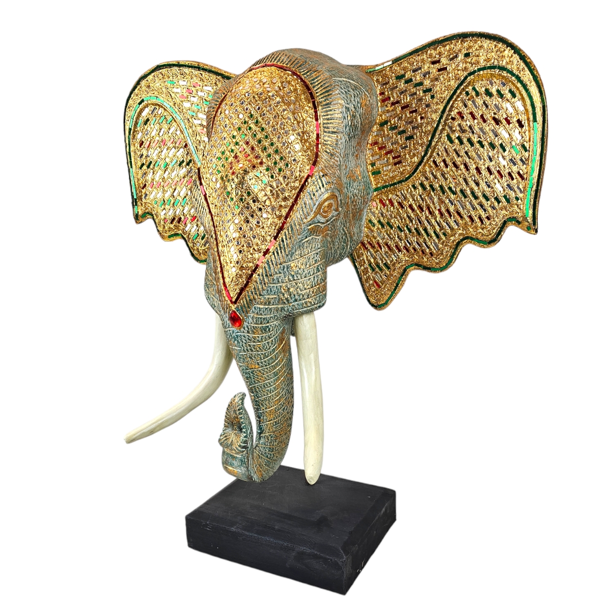 Stellen Sie sich mit dem handgefertigten Elefantenkopf aus Holz eine exotische, verzaubernde Atmosphäre direkt in Ihr Zuhause. Kompetent gearbeitet in Thailand, ist jedes Stück ein Unikat, durch das Sie einen Hauch von fernöstlicher Kultur erleben können. Jedes Detail des Elefanten wurde sorgfältig gestaltet, um seine majestätische Schönheit widerzuspiegeln. Mosaiksteine, die kunstvoll an einem robusten Ständerwerk befestigt sind, verleihen diesem Produkt zusätzlichen Glanz und Reflektion, wodurch Anspruch und Eleganz unterstrichen werden. Der Holzelefantenkopf ist nicht nur ein auffälliger Blickfang, sondern erzählt auch eine Geschichte von Handwerkskunst und Tradition. Machen Sie ihr Zuhause zu einem Ort voller Seele und Charakter. Der Elefantenkopf aus Holz transportiert eine tiefe Symbolik und fügt Ihrem Zuhause eine ästhetische und zugleich tiefgründige Dimension hinzu. Verschönern Sie Ihre Wohnkultur und lassen Sie sich ins Land der Tempel und Tuk-Tuks entführen.
