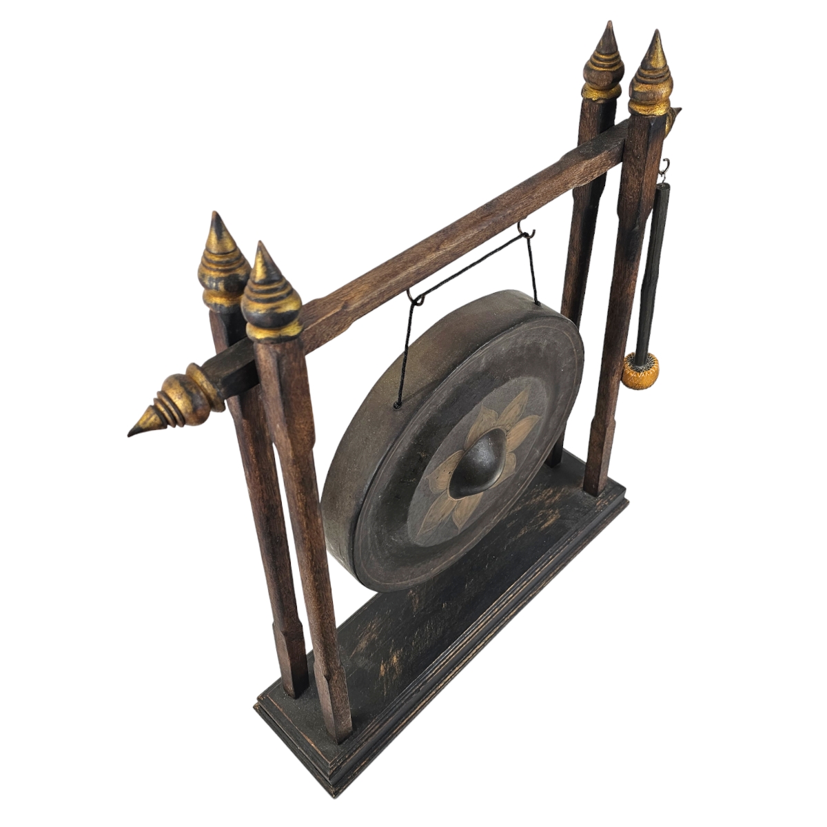 Entdecken Sie die faszinierende Schönheit und Qualität unserer goldenen Glocke aus Thailand, die stilvoll in einen handgefertigten Holzrahmen eingebettet ist. Diese Glocke ist nicht nur ein dekoratives Accessoire, sondern auch ein Inbegriff von Handwerkskunst und Kultur. Ihre glänzende goldene Farbe und der melodische Klang erzeugen eine warme und einladende Atmosphäre in jedem Raum. Der robuste Holzrahmen verleiht dieser Glocke einen rustikalen Charme. Erleben Sie die Magie von Thailand in Ihrem eigenen Zuhause mit unserer einzigartigen goldenen Glocke. Ideal als Geschenk oder um Ihre eigene Sammlung von Weltkunstschätzen zu erweitern.