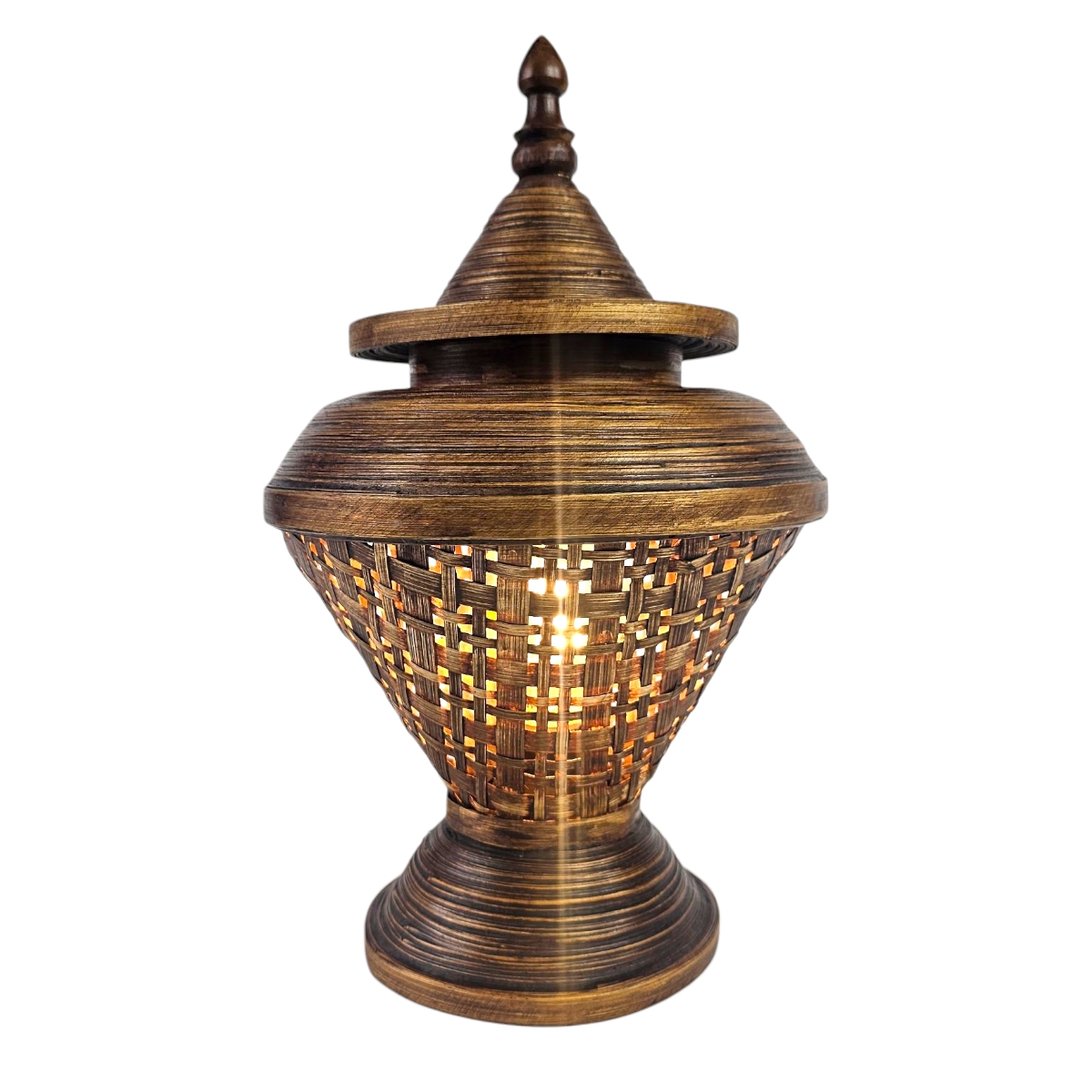 Erleben Sie die besondere Ausstrahlung unserer Rattan Lampe, die natürliche Schönheit und handwerkliches Können in Einklang bringt. Gefertigt im Herzen Thailands, besticht diese Lampe durch ihren einzigartigen Charme.