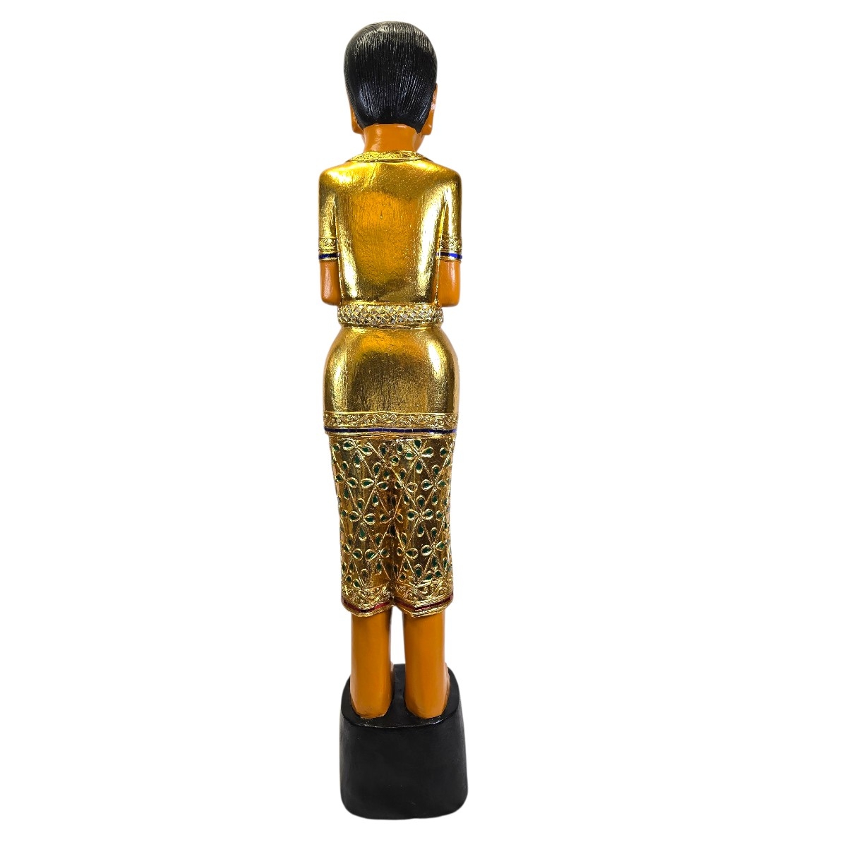 - Schwarze Haare: Die Figur ist mit traditionell schwarzen Haaren versehen, die die klassische Eleganz und Anmut thailändischer Statuen widerspiegeln.