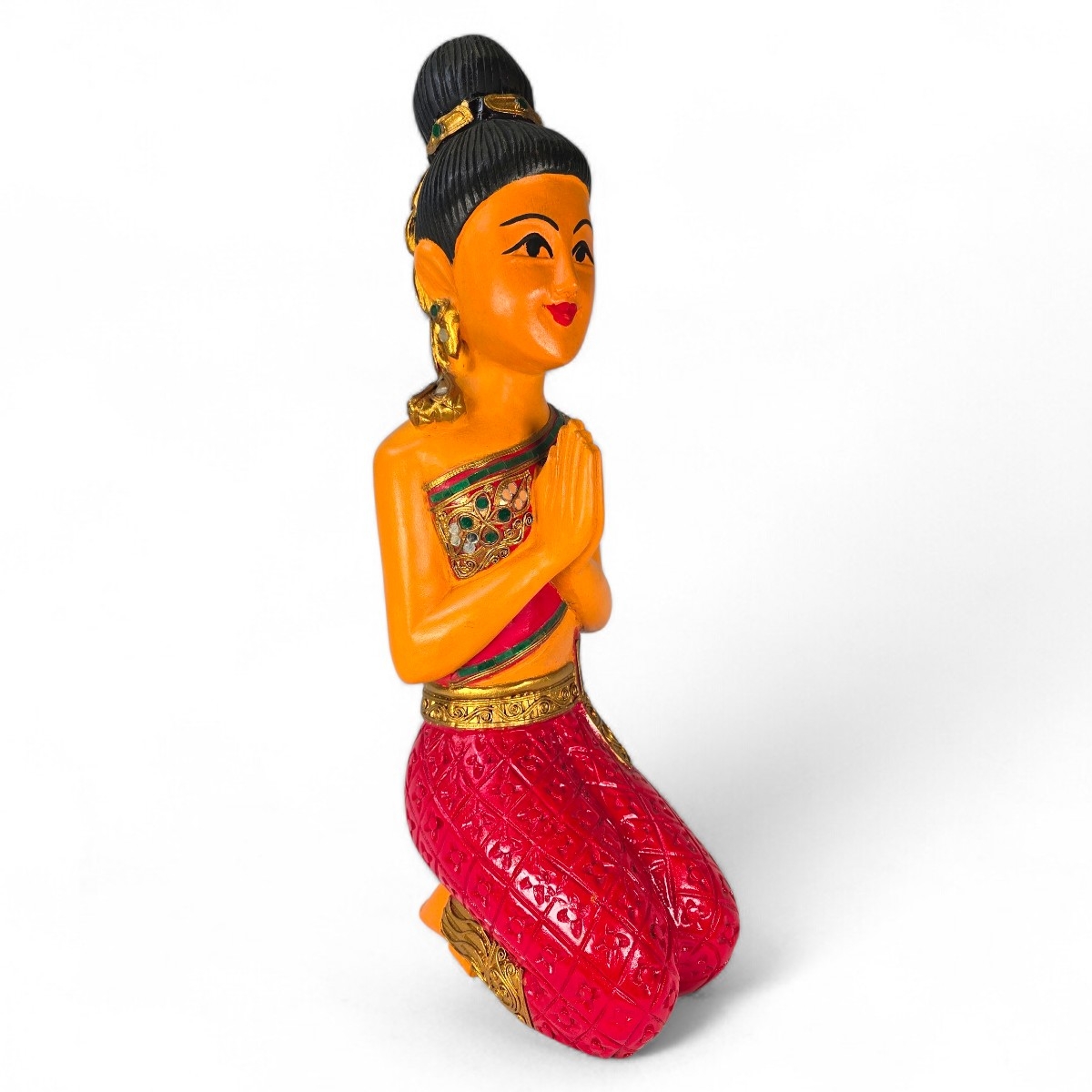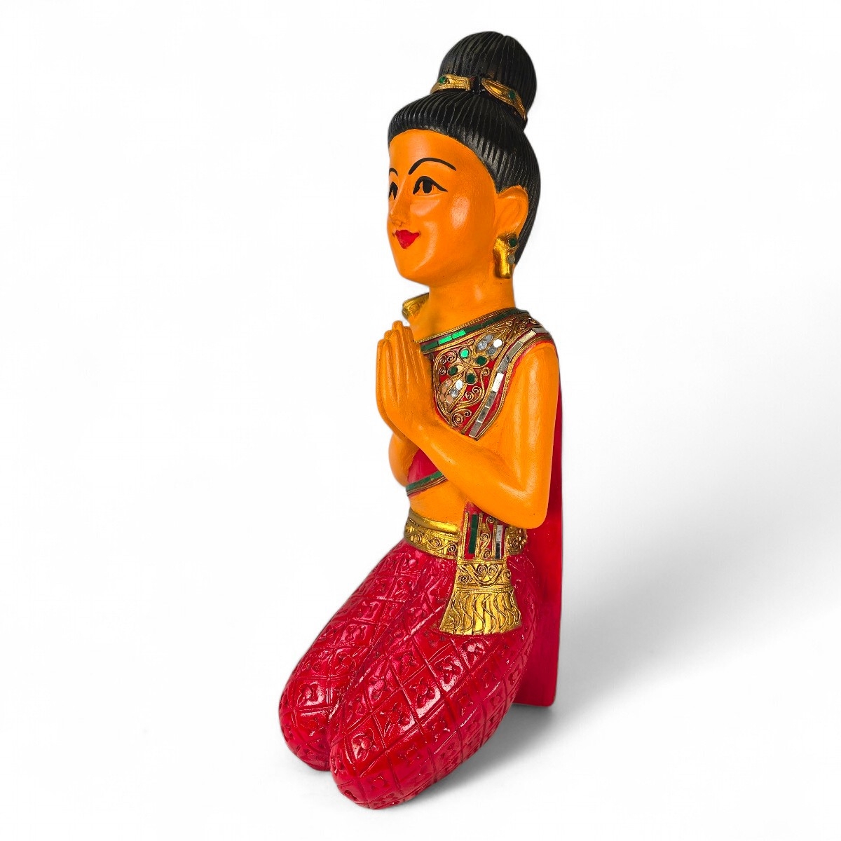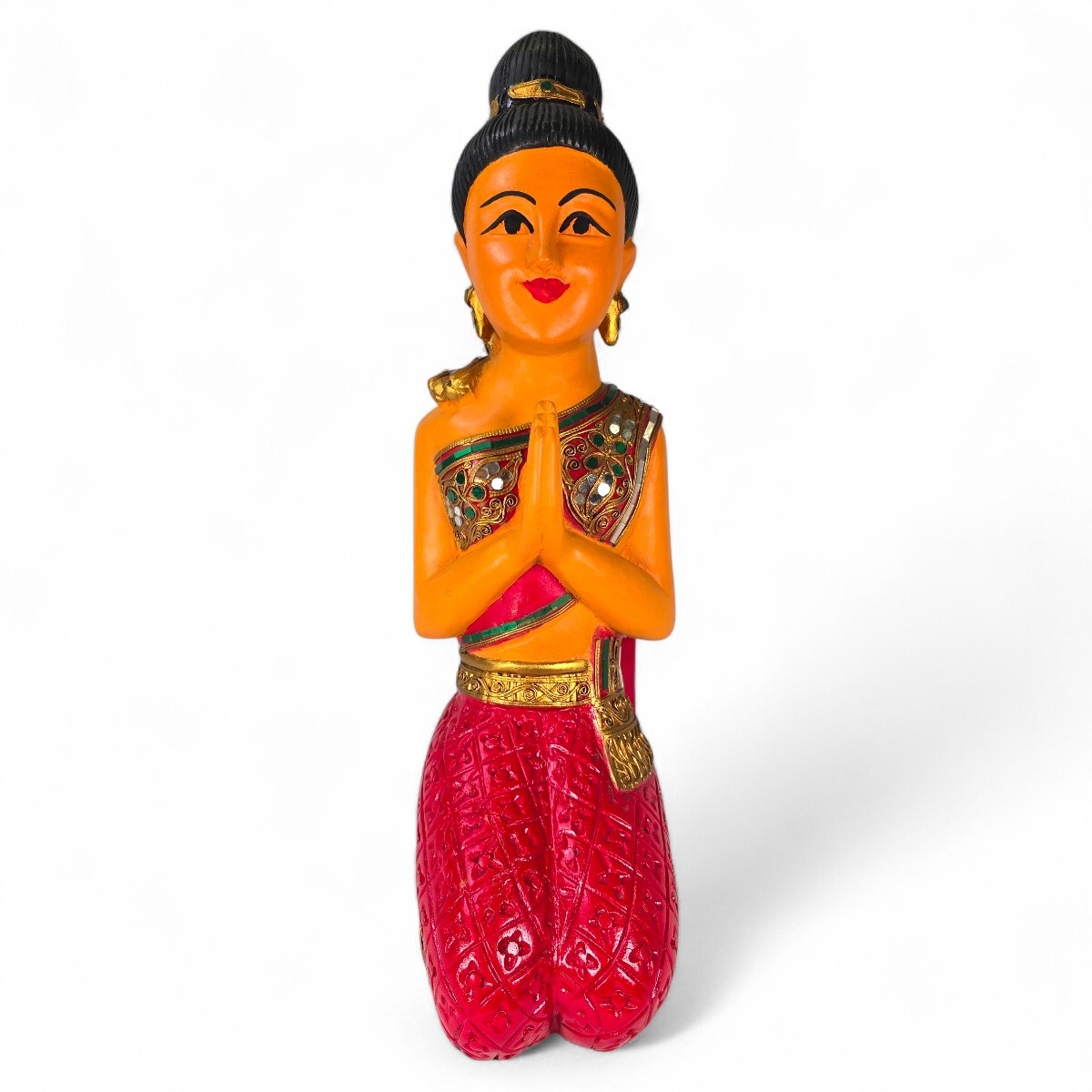 Verzaubern Sie Ihre Umgebung mit dem zauberhaften Charme von Sawadee Ka Lady. Dieses exquisite Produkt, handgefertigt in Thailand aus Holz, ist mehr als nur Dekoration - es ist eine Feier der thailändischen Handwerkskunst. Die fantastische Farbgestaltung dieser sitzenden Figur ist eine atemberaubende Ergänzung für jedes Interieur. Beeindrucken Sie Ihre Gäste und betonen Sie Ihren guten Geschmack. Tauchen Sie ein in die unwiderstehliche Schönheit der Sawadee Ka Lady und erleben Sie eine Brise Exotik mit jedem Blick. Dieses Produkt ist nicht nur eine Augenweide, sondern auch ein Geschenk der Liebe und Hingabe, hergestellt mit feinster Sorgfalt und Aufmerksamkeit von Handwerkern in Thailand. Lassen Sie sich von der Sawadee Ka Lady verzaubern und ergänzen Sie Ihre Raumdekoration mit einer Prise orientalischem Charme.