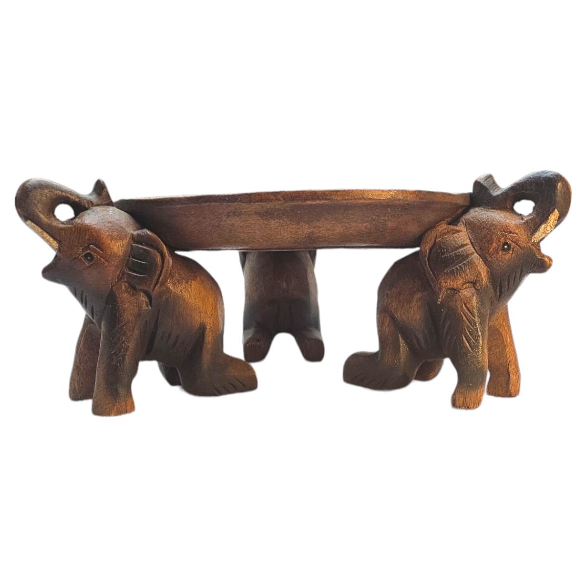 Verleihen Sie Ihrem Zuhause mit unserer Elefant Obstschale einen Hauch von exotischer Eleganz. Handgefertigt aus hochwertigem Holz in Thailand, bietet diese Obstschale nicht nur praktischen Stauraum für Ihre frischen Früchte, sondern präsentiert sie auch auf kunstvolle Weise. Mit seinem beeindruckenden Elefantendesign ist diese Schale ein visuelles Highlight in jeder Küche oder Esszimmer. Jedes Stück ist ein echtes Unikat, das von thailändischen Handwerkern mit Liebe zum Detail gefertigt wird. Erweitern Sie Ihre Tischkultur mit diesem ungewöhnlichen und dennoch funktionellen Produkt. Tauchen Sie ein in die Welt der exotischen Handwerkskunst mit unserer Elefant Obstschale.