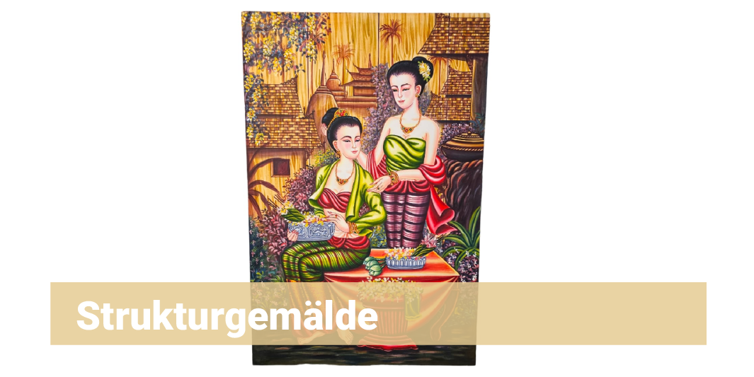 Tauchen Sie ein in die faszinierende Welt der thailändischen Kunst mit unserem atemberaubenden Struktur Gemälde. Jedes Kunstwerk ist ein Unikat, liebevoll von talentierten thailändischen Künstlern handgemalt und auf hochwertigem Stoff verewigt. Diese Gemälde fangen nicht nur die Essenz der thailändischen Kultur und Natur ein, sondern bringen auch eine beeindruckende Textur und Tiefe in Ihr Zuhause. Egal, ob Sie ein Kunstliebhaber oder einfach auf der Suche nach einem einzigartigen Akzent für Ihre Wände sind – dieses Gemälde wird Sie begeistern. Die lebendigen Farben und die kunstvollen Details machen jedes Stück zu einem wahren Meisterwerk, das Ihre Sinne verzaubert und Ihrem Interieur eine exotische Note verleiht. Ergänzen Sie Ihre Sammlung mit einem authentischen thailändischen Kunstwerk, das Geschichten erzählt und Emotionen weckt. Perfekt als Geschenk oder als persönliches Highlight Ihres Wohnraums – lassen Sie sich von der Magie des handgemalten Struktur Gemäldes aus Thailand verzaubern.Warum bei uns einkaufen?