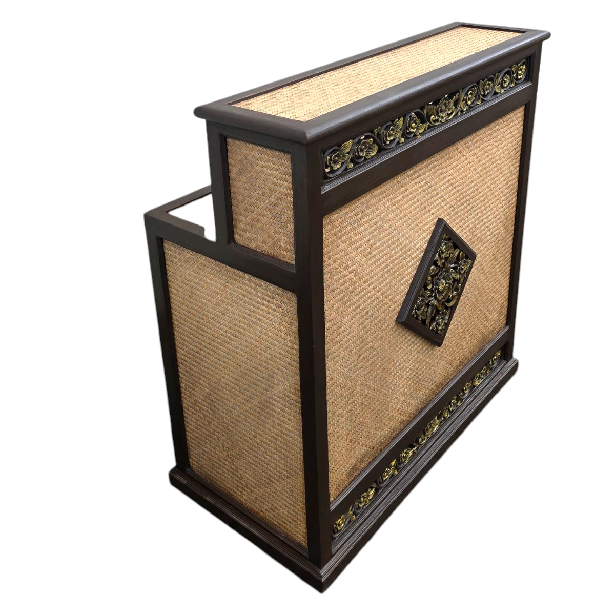 - Einzigartiges Design: Die Seitenwände und die Oberfläche sind mit hochwertigem Rattan gefertigt und verleihen jedem Raum eine natürliche und warme Atmosphäre. Die Vorderseite des Tresens ist mit einem kunstvollen Relief verziert und bietet einen ansprechenden Blickfang.