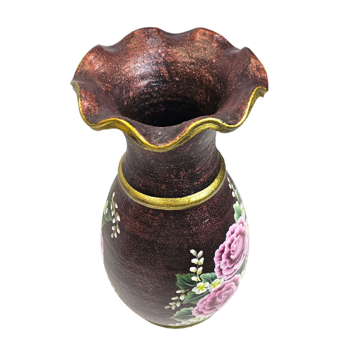 Entzücken Sie Ihr Zuhause mit dieser wundervoll handbemalten Vase aus Ton. Meisterhaft gefertigt in Thailand, ist dieses Stück eine verschönernde Ergänzung zu jeder Wohnkultur. Es ist detailreich bemalt mit lebhaften Blumenmotiven, die jedem Raum einen Hauch von Frische und Leichtigkeit verleihen. Diese Vase ist nicht nur ein funktionaler Behälter, sondern auch ein Kunstwerk für sich. Mit ihrem einzigartigen Design und ihrer faszinierenden Farbpalette ist diese Vase definitiv ein Blickfang. Umarmen Sie die Schönheit der Handwerkskunst und holen Sie sich noch heute diese bemalte Vase aus Ton nach Hause!